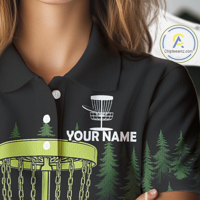 Black and Green Forest Disc Golf basket Women Disc golf polo shirts Custom team disc golf attire NQS10801