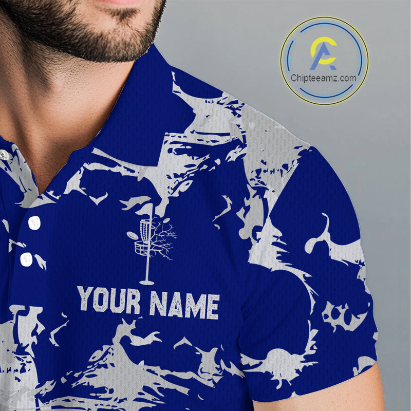 Blue and Gray Camo Disc Golf basket Mens Disc golf polo shirts Custom team disc golf jerseys NQS10797