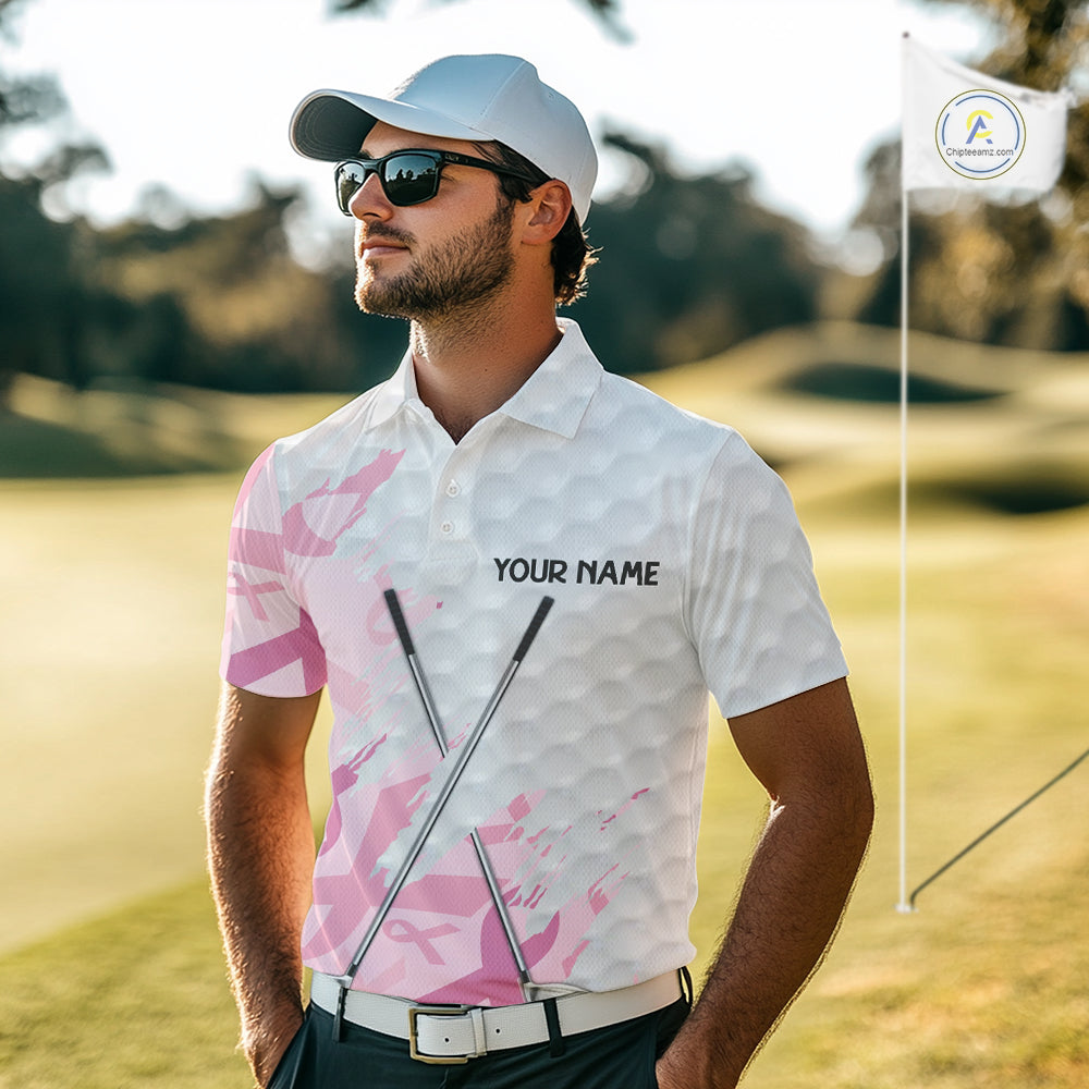 Breast cancer Mens golf polo shirts custom Pink ribbon pattern golf clubs team golf tops for men NQS10423