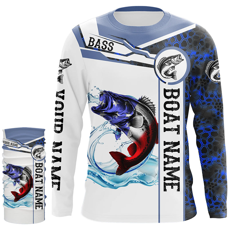 Bass Fishing blue camo American Flag Custom name & boat name performance Long Sleeve Fishing Shirts NQS5190