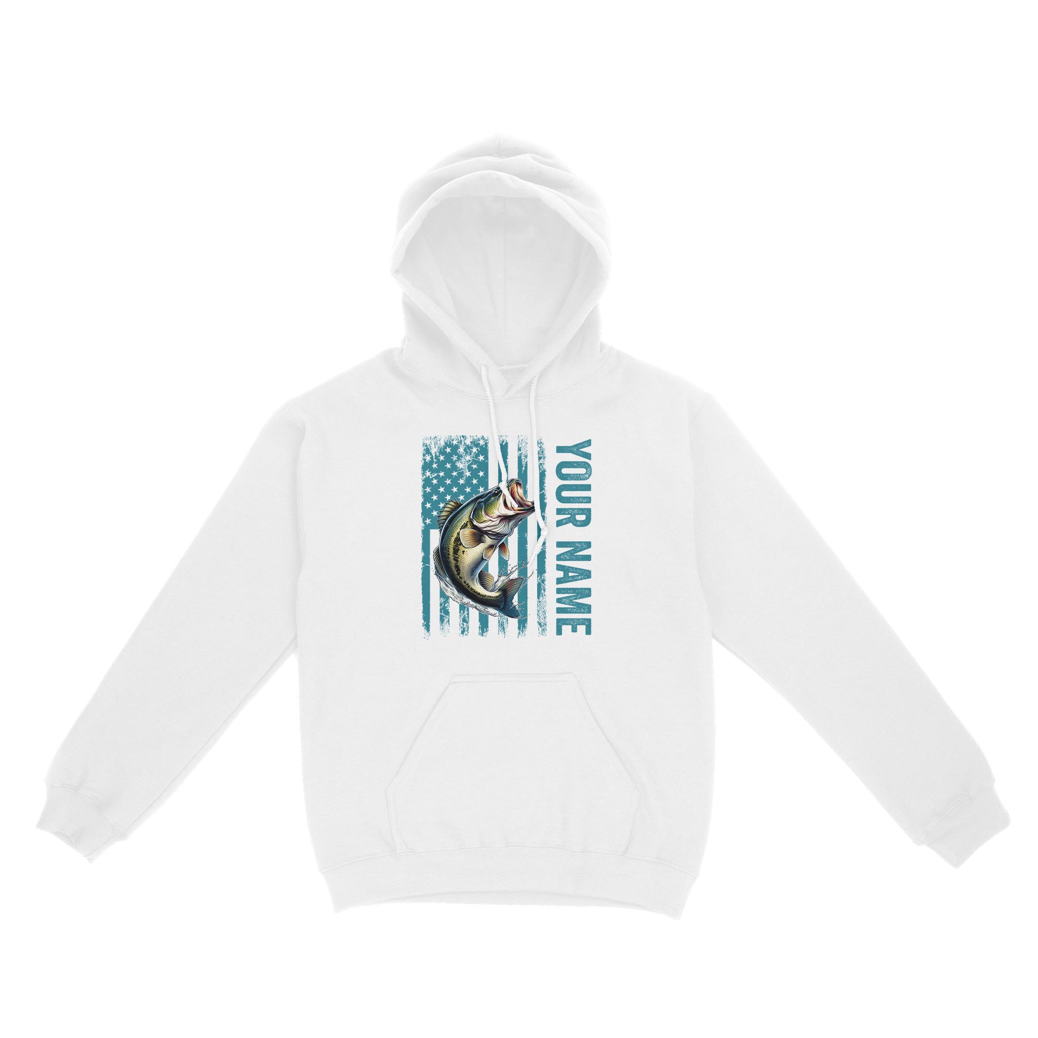 Blue American Flag Largemouth Bass Fishing Custom Name Bass Fishing Hoodie, Gift for Fisherman D03 NQS9908