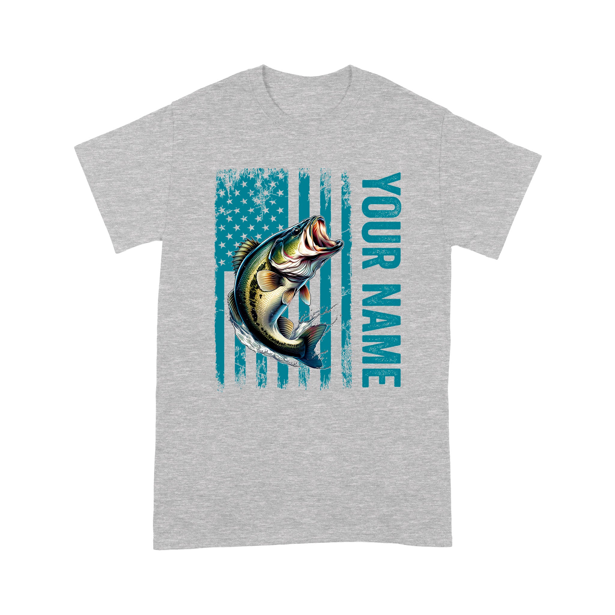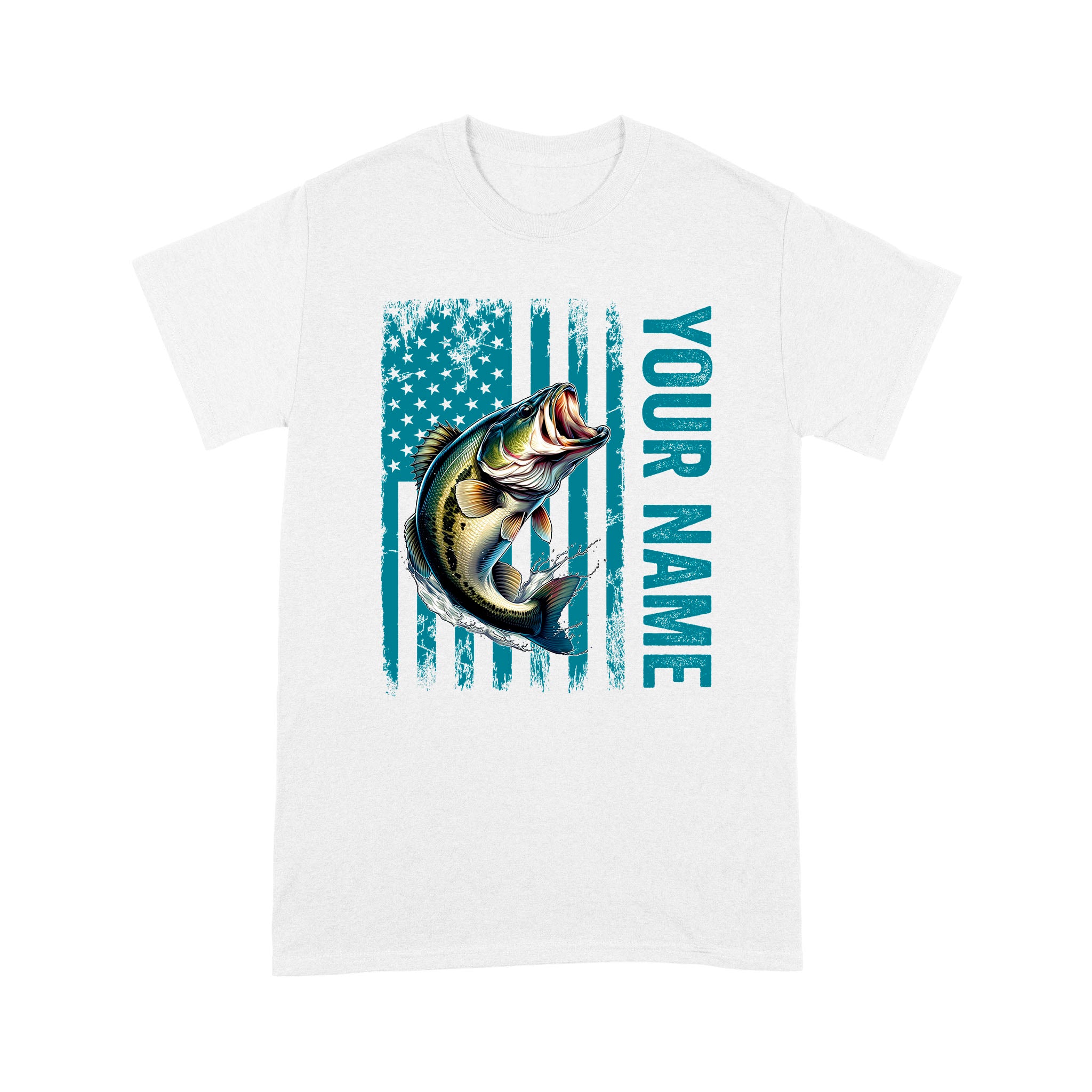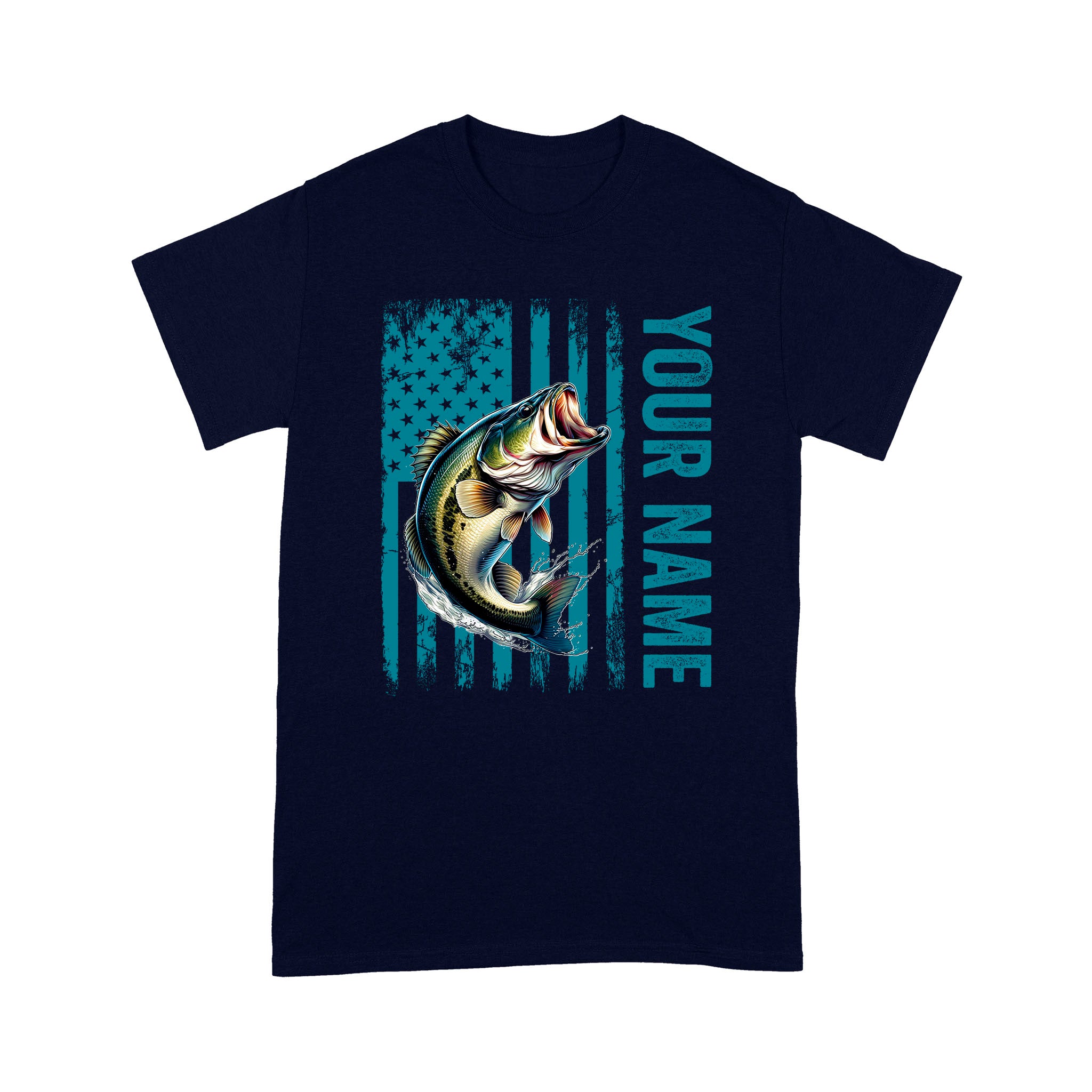 Blue American Flag Largemouth Bass Fishing Custom Name Bass Fishing T-Shirt, Gift for Fisherman D03 NQS9908