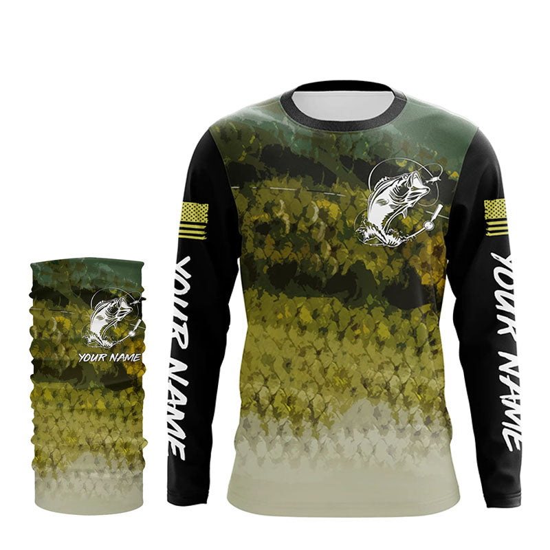 Largemouth bass Fishing green scales American flag Custom long sleeve performance Fishing jerseys NQS6052