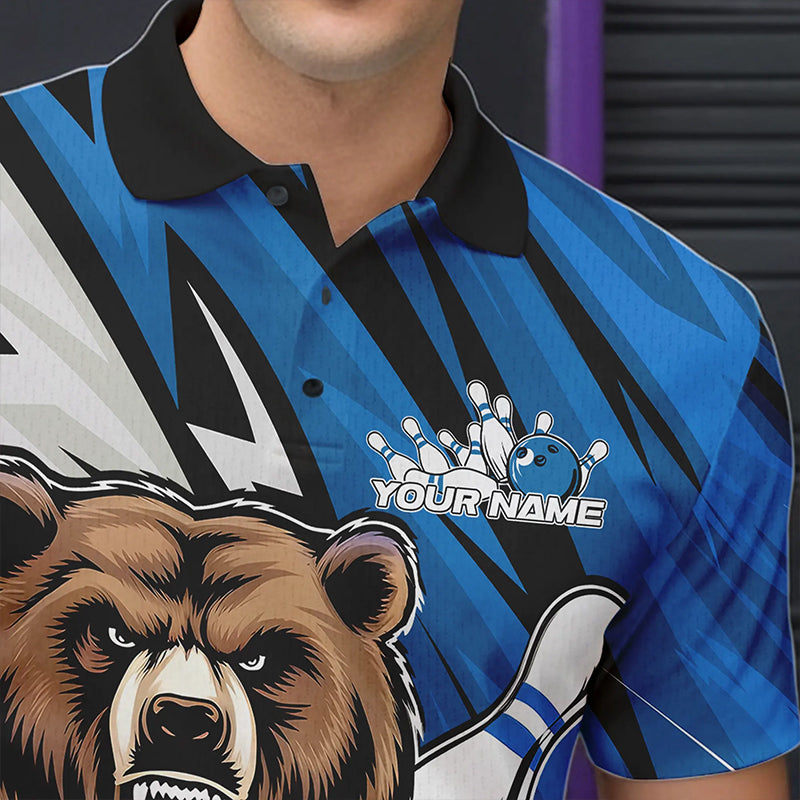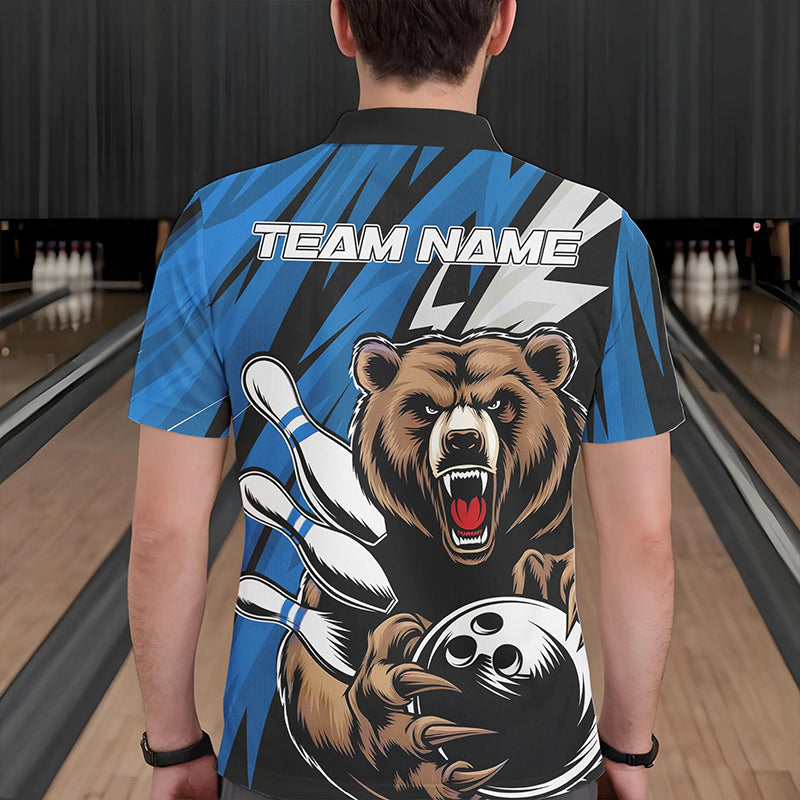 Personalized Bear Bowling Polo Shirts For Men, Bear Bowling Team Blue Bowling League Shirt IPHW8829