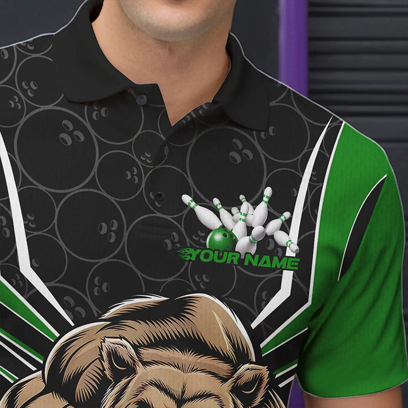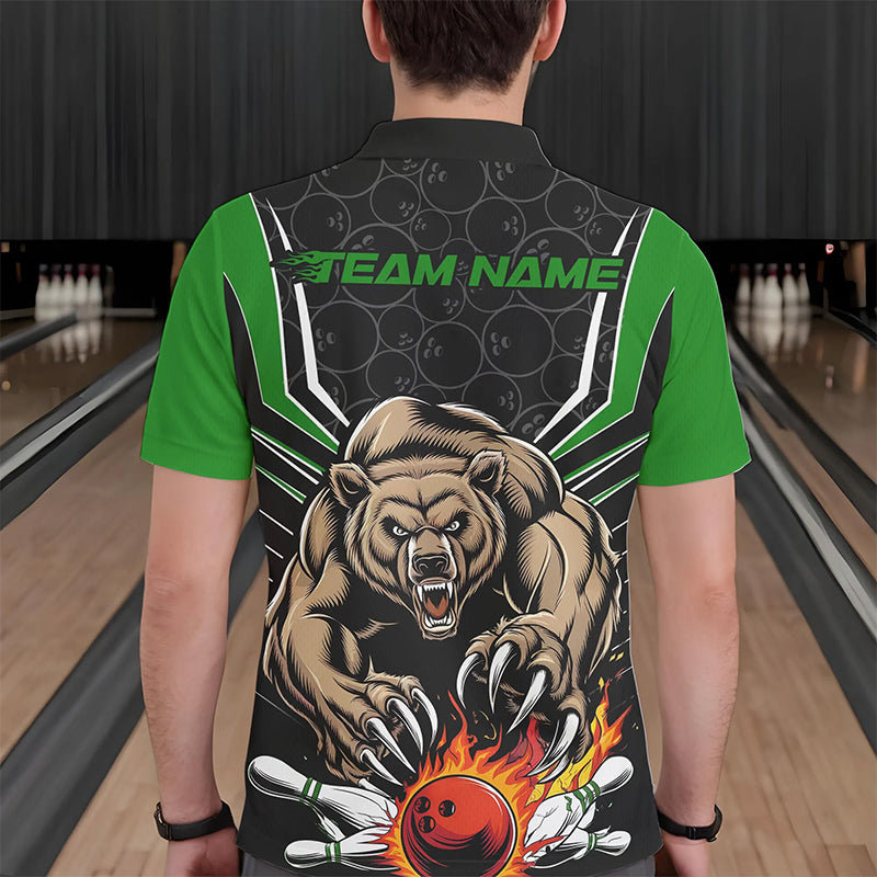 Black And Green Custom Bear Bowling Jerseys, Bear Bowling Team Polo Shirts For Men IPHW8832