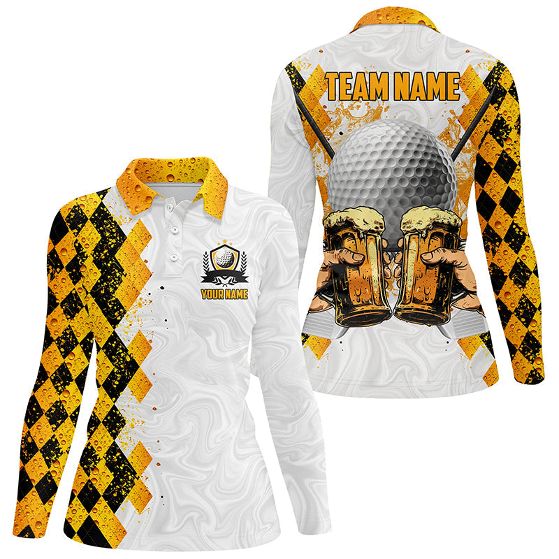 Golf and Beer argyle pattern Custom Women golf polo shirts, personalized golf gifts for women NQS8424