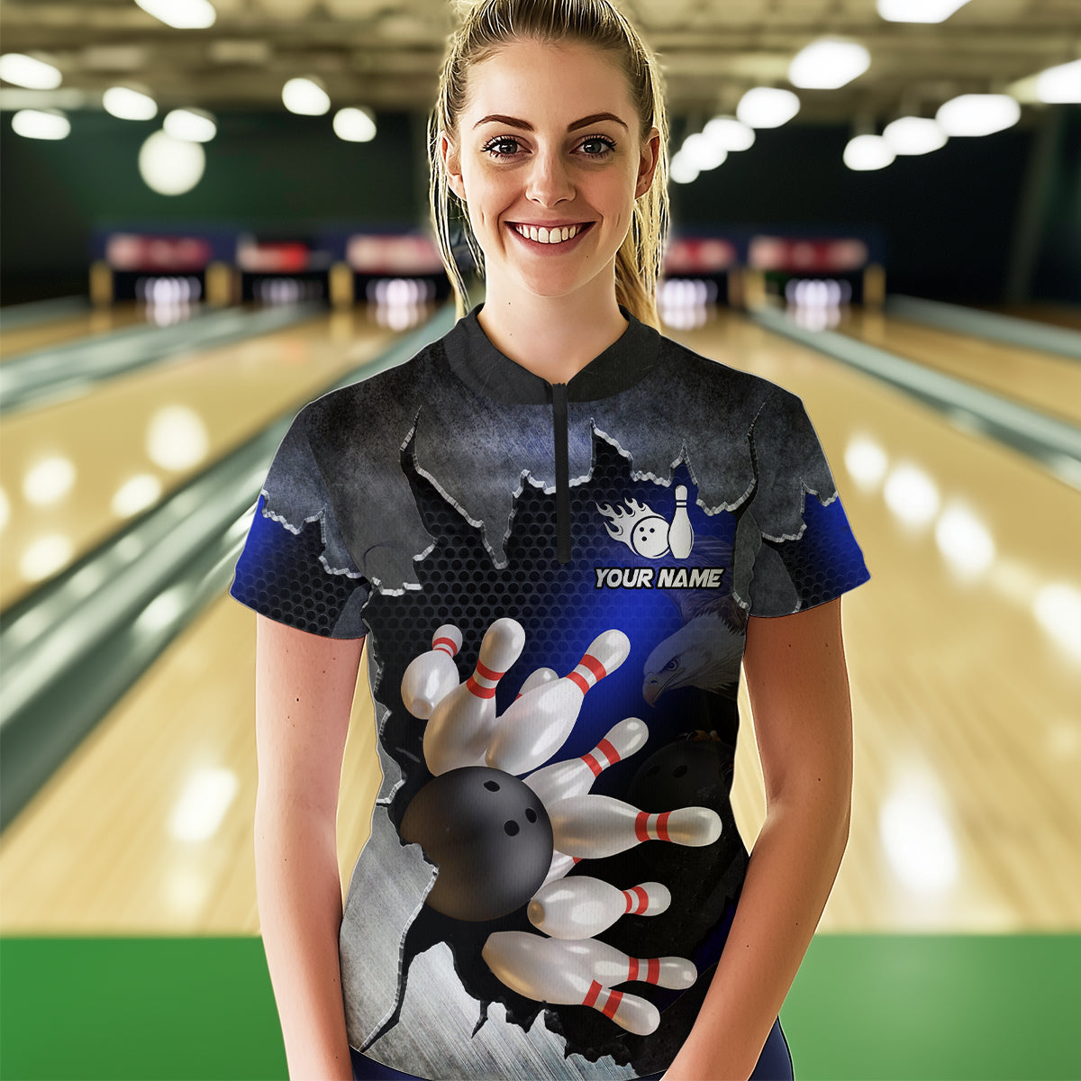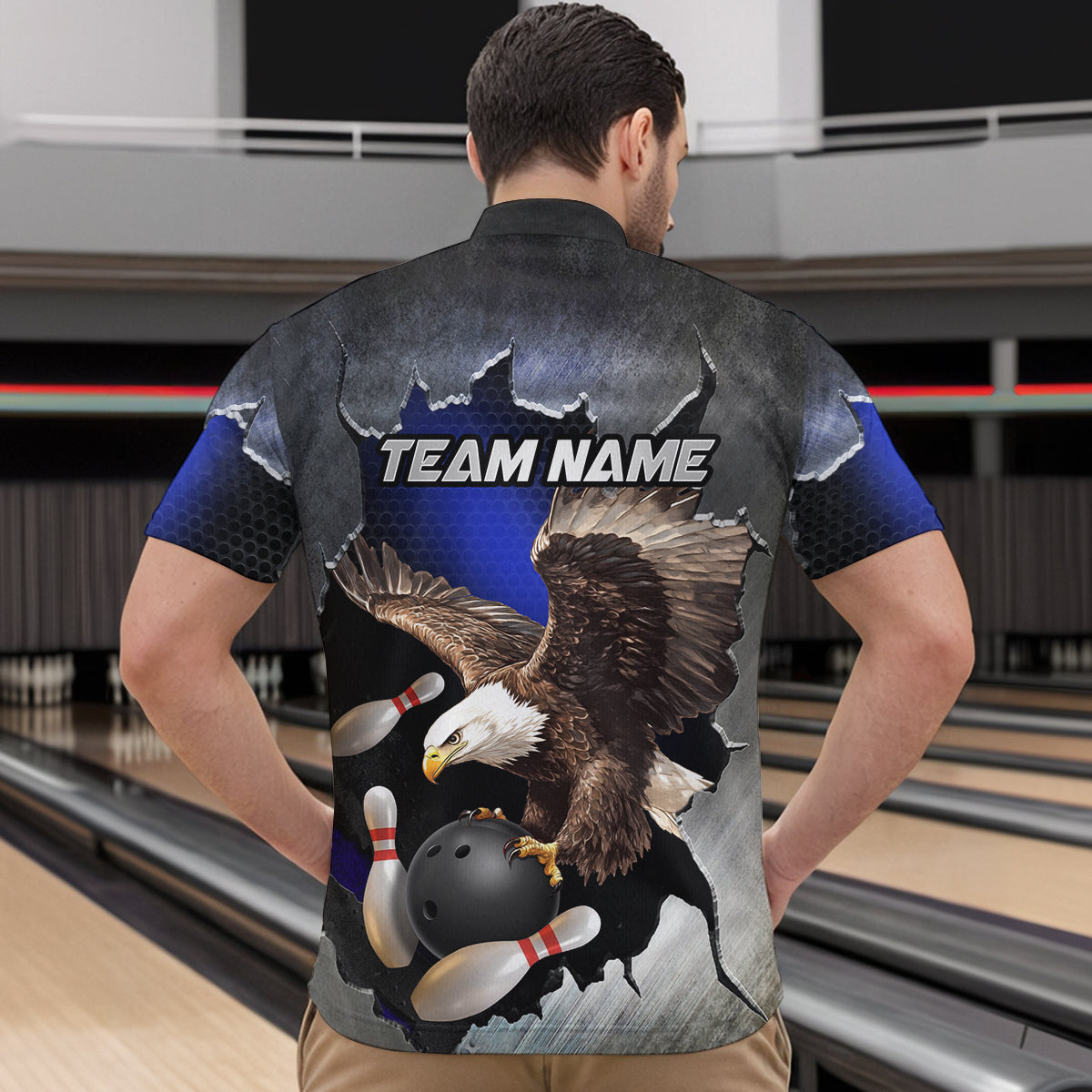 Custom Eagle Blue Bowling Shirt for Men Women Team Eagle Bowling Jersey Shirts MBL77