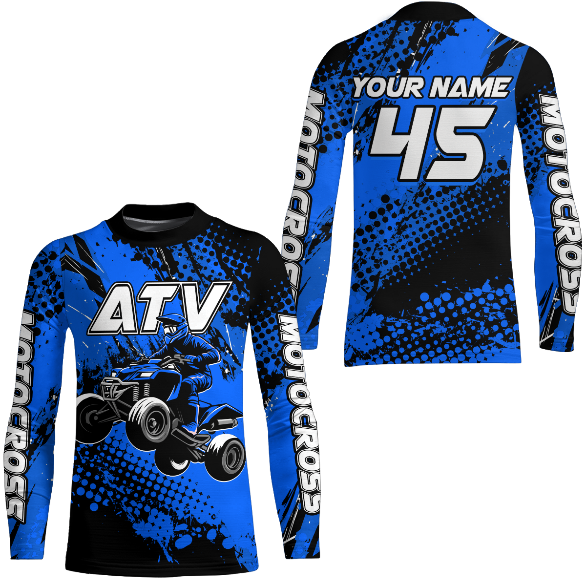 Custom Blue ATV Motocross Racing Jersey Kid Adult Quad Bike Jersey Off-Road Shirt UPF30+ ATV Shirt DNT12
