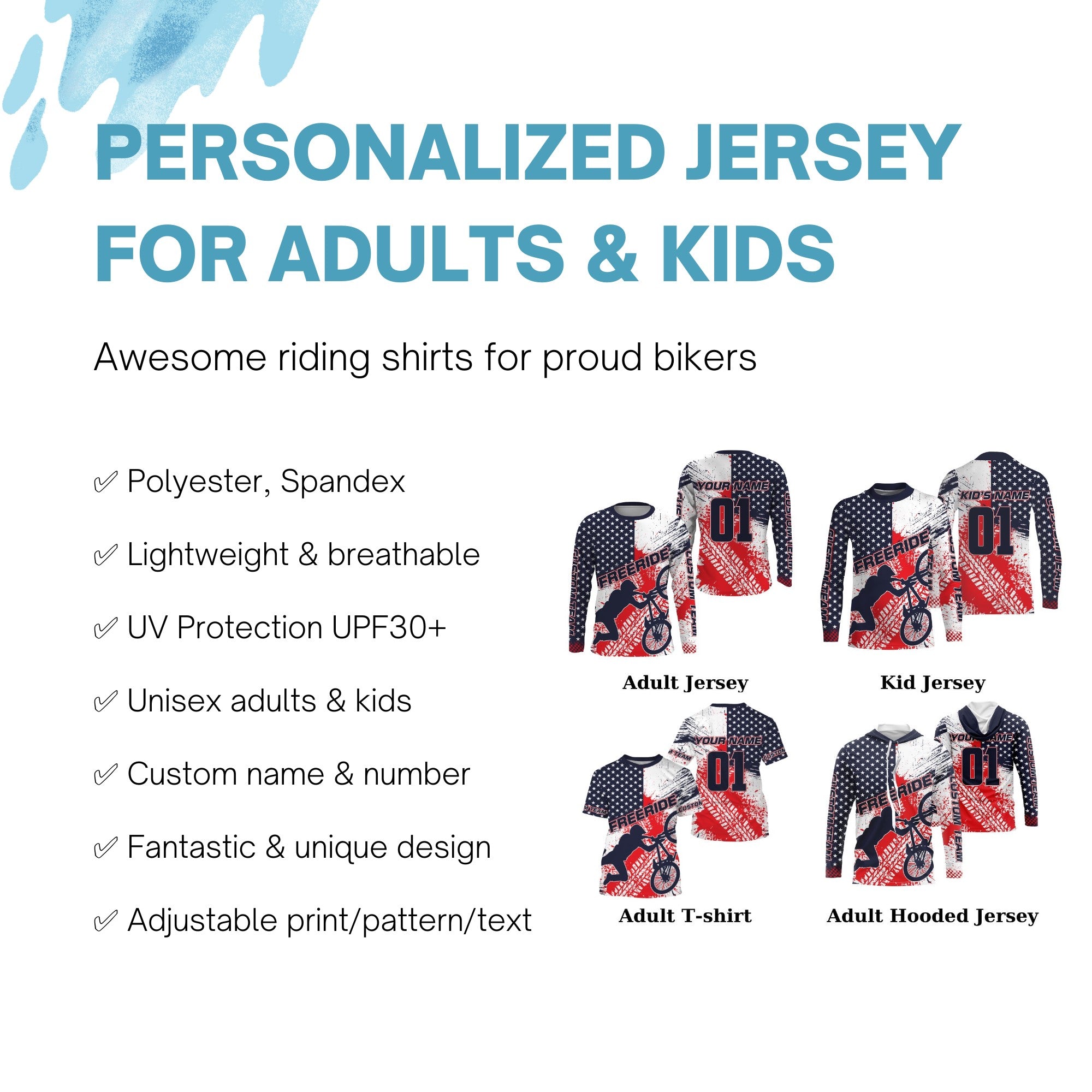 Patriotic adult kid BMX jersey Personalized UPF30+ American freeride bike shirt USA Cycling gear| SLC26