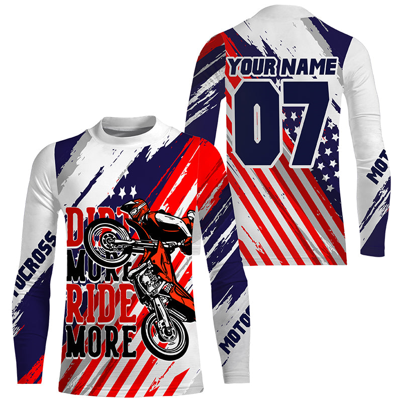 Patriotic Motocross Jersey UPF30+ Dirt More Ride More Custom Dirt Bike Racing American Flag Shirt NMS1276
