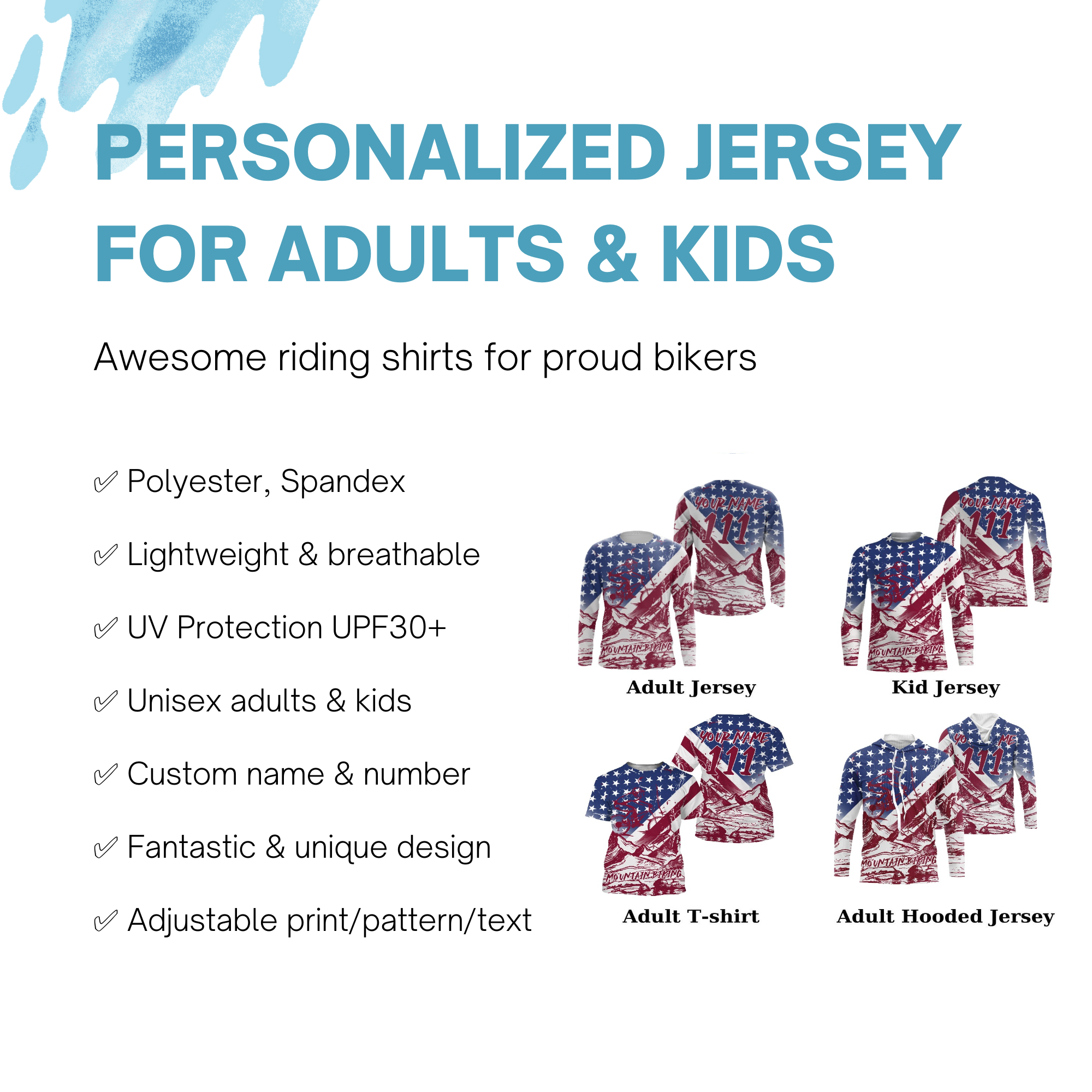 Patriotic adult kid MTB jersey Custom UPF30+ enduro mountain bike shirt USA downhill cycling gear| SLC27