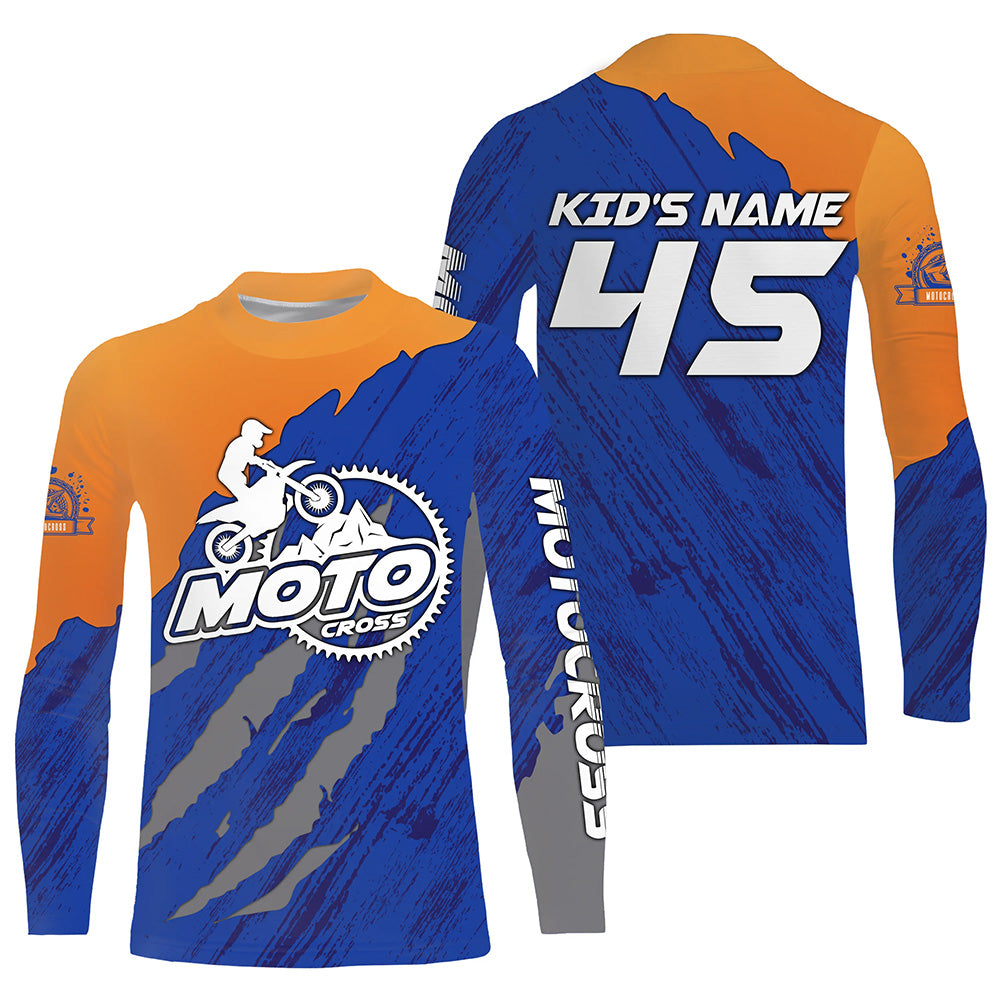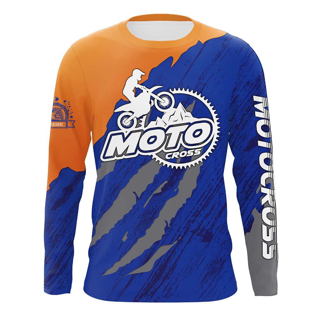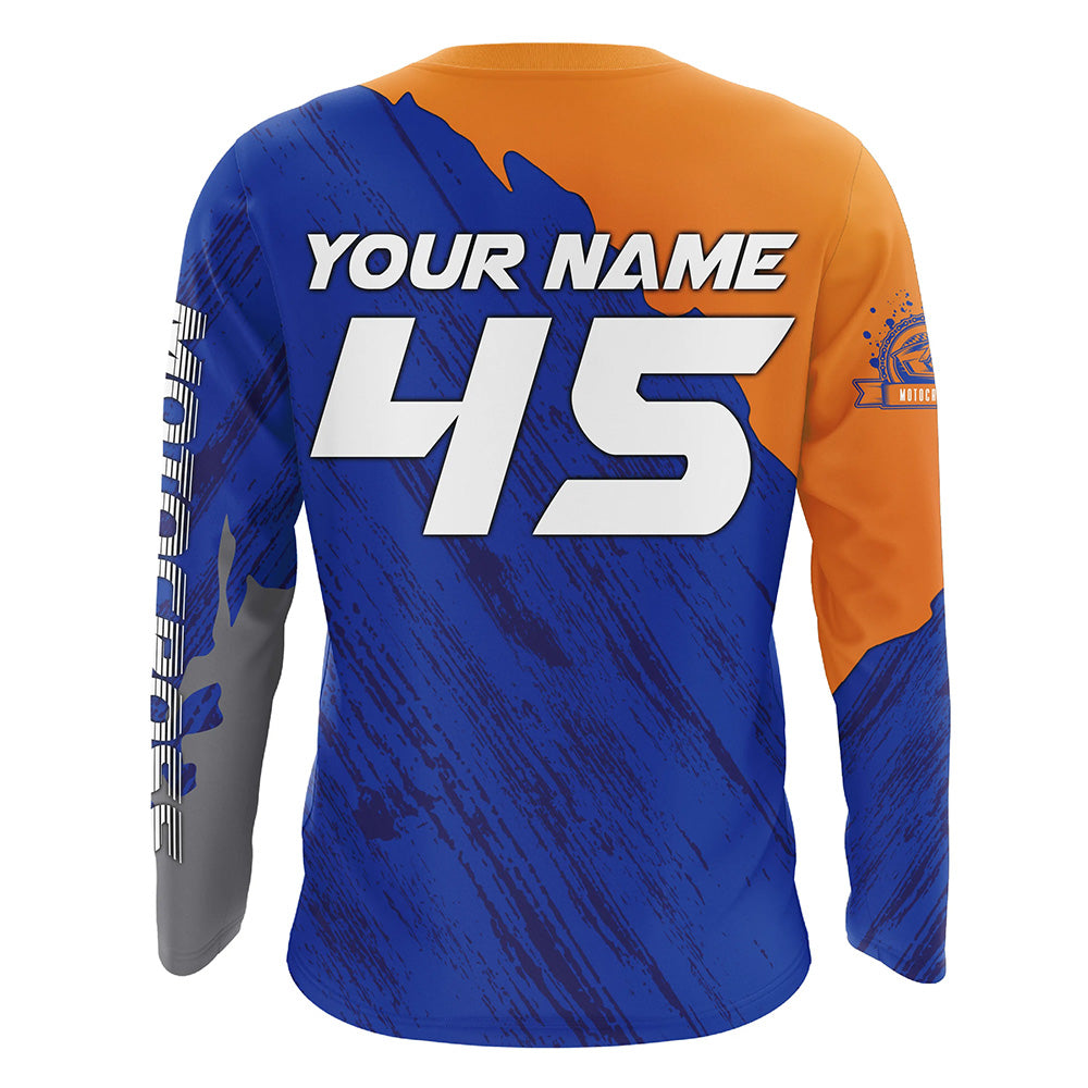 Personalized Motocross Jersey UPF30+ Dirt Bike Off-Road Kid Men Women Motocross Shirt Orange Blue XM18