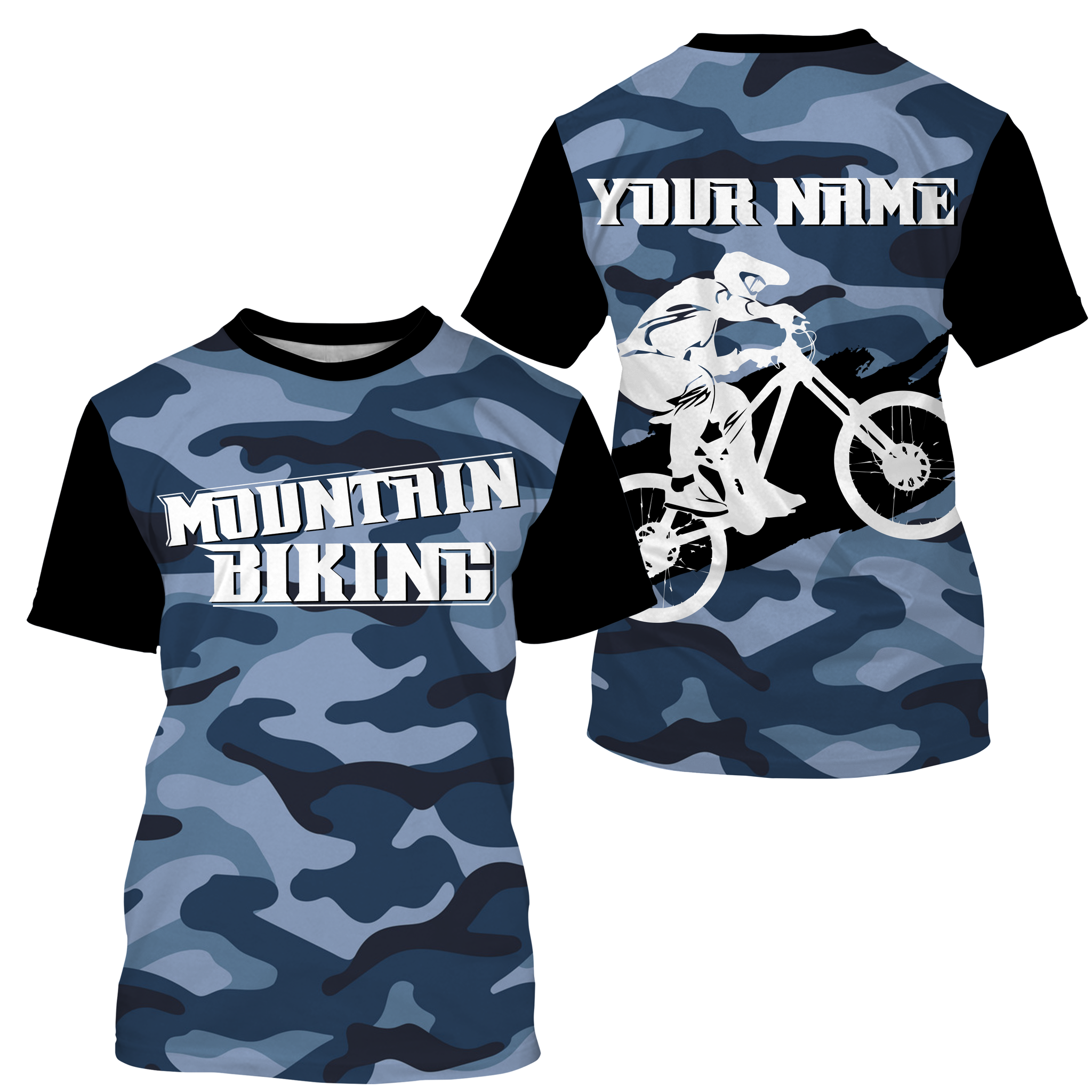 Unisex Mountain Biking Jersey - Custom Name Blue Camo MTB Jersey Cycling Shirt for Cyclist Bike Riders JTS415