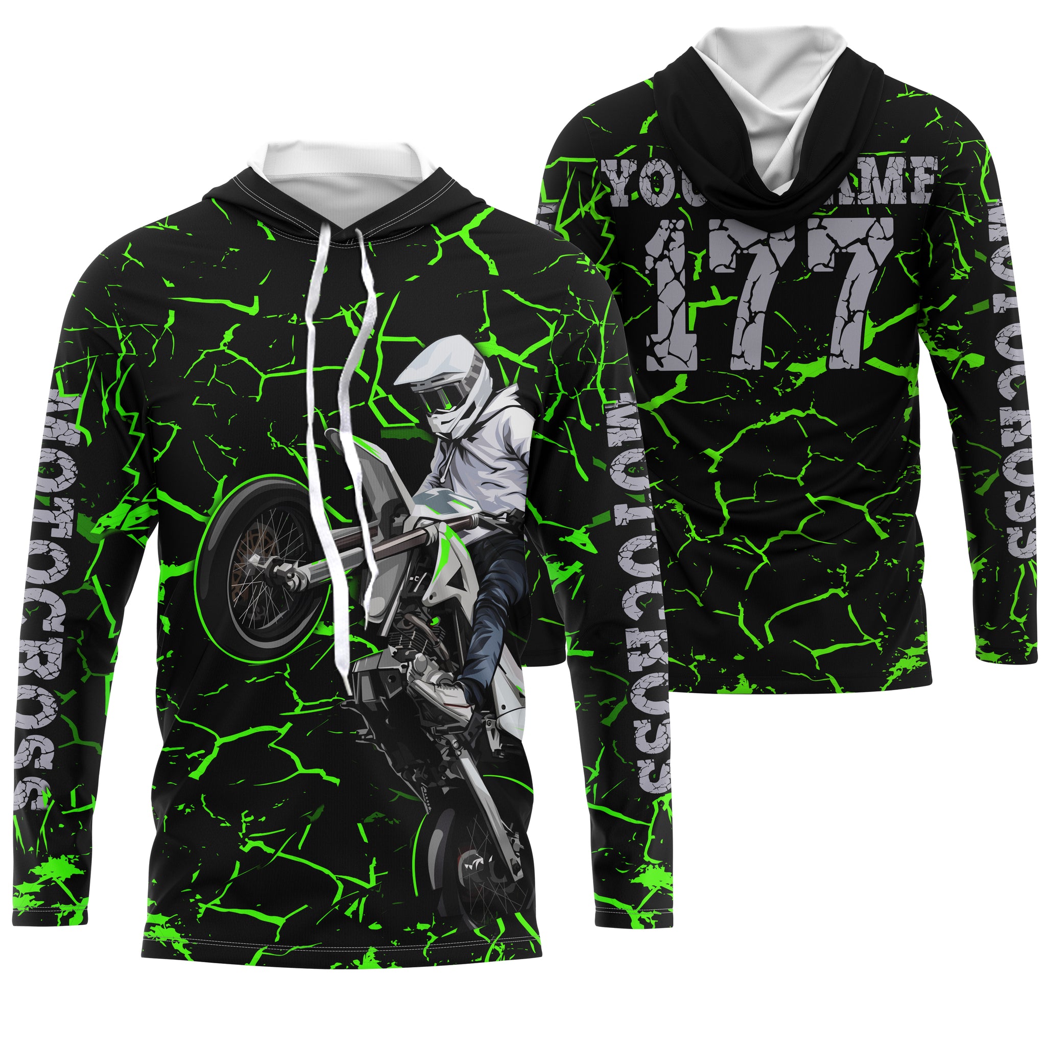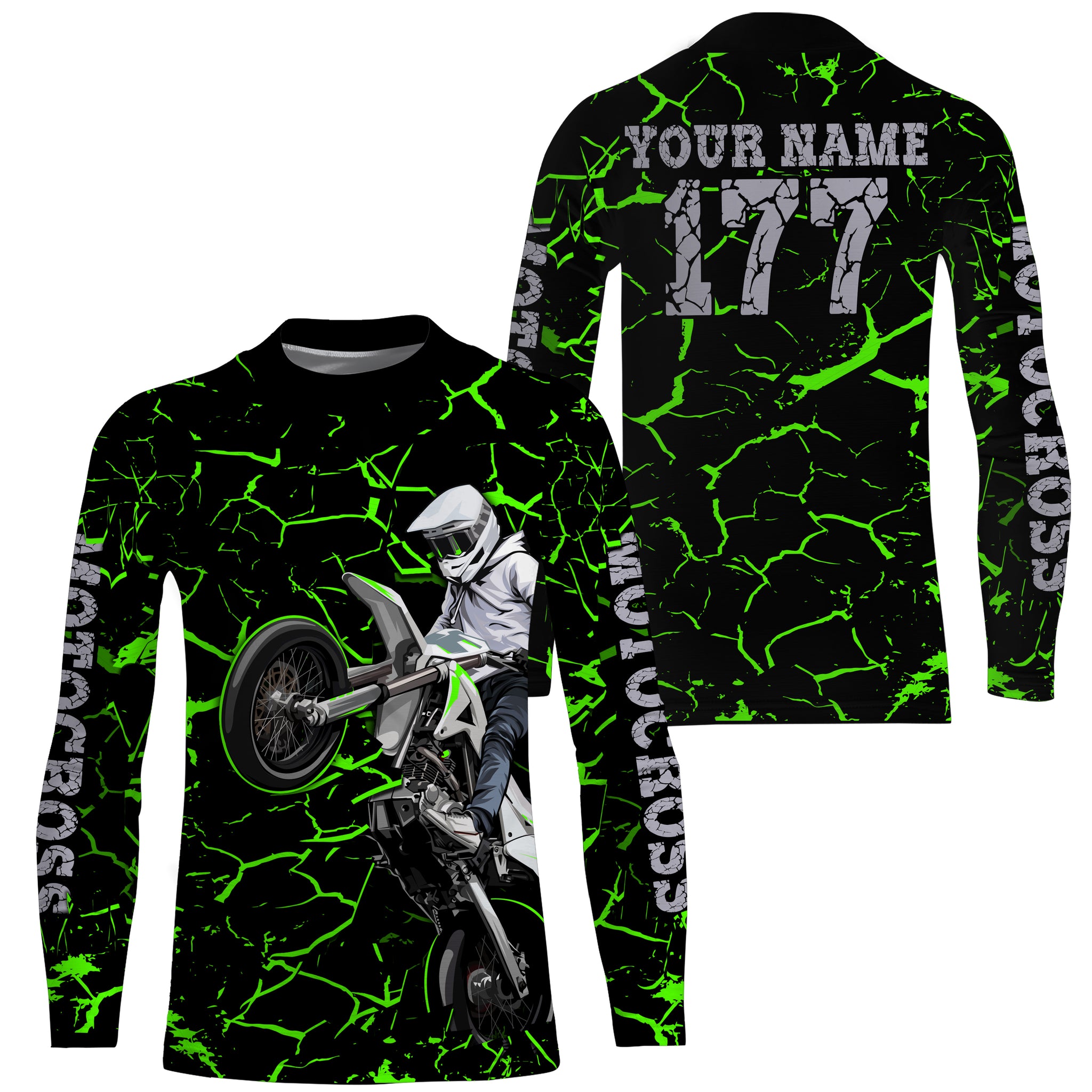 Youth kid adult Motocross racing jersey green shirt custom UV protective off-road MX extreme biker PDT35