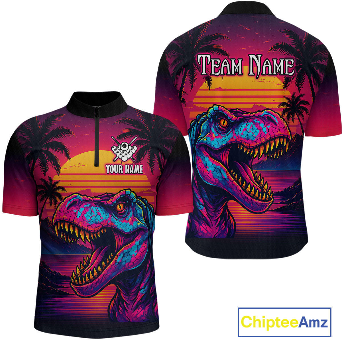 Custom Neon Dinosaur 8 Ball Billiard Shirt for Men Polo & Quarter-Zip Billiard Team Jerseys NNT81
