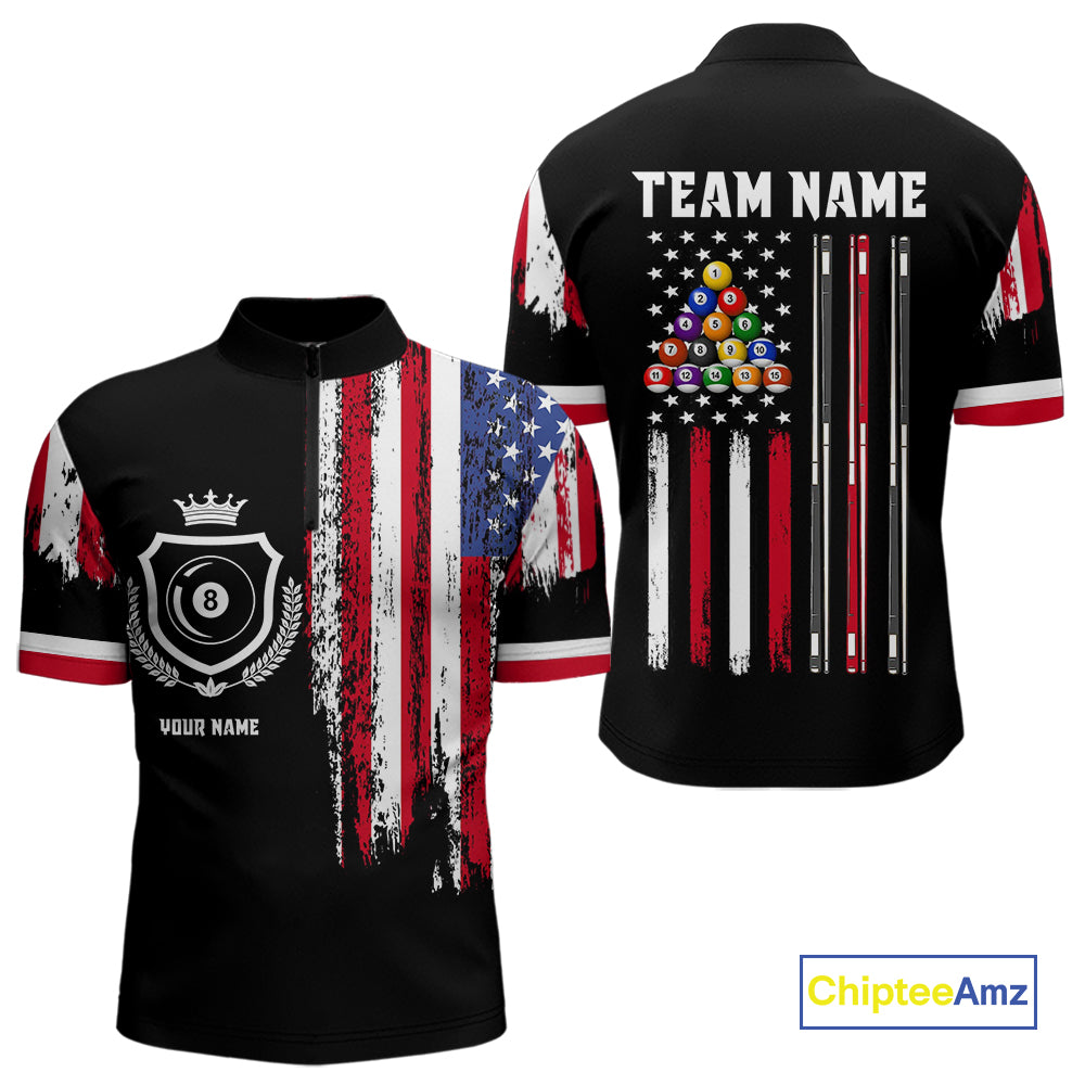 Personalized Grunge American Flag 9 Ball Pool Team Shirt For Men Custom Patriotic Billiard Shirts TDM4734