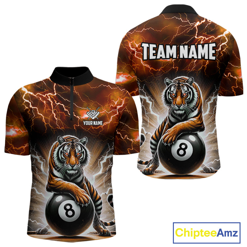 Lightning Thunder Tiger Custom Orange 8 Ball Pool Shirts For Men, Billiard Team League Jerseys TDM4814