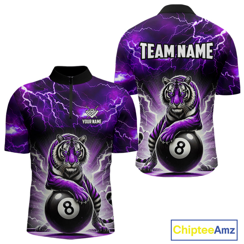 Lightning Thunder Tiger Custom Purple 8 Ball Pool Shirts For Men, Billiard Team League Jerseys TDM4815