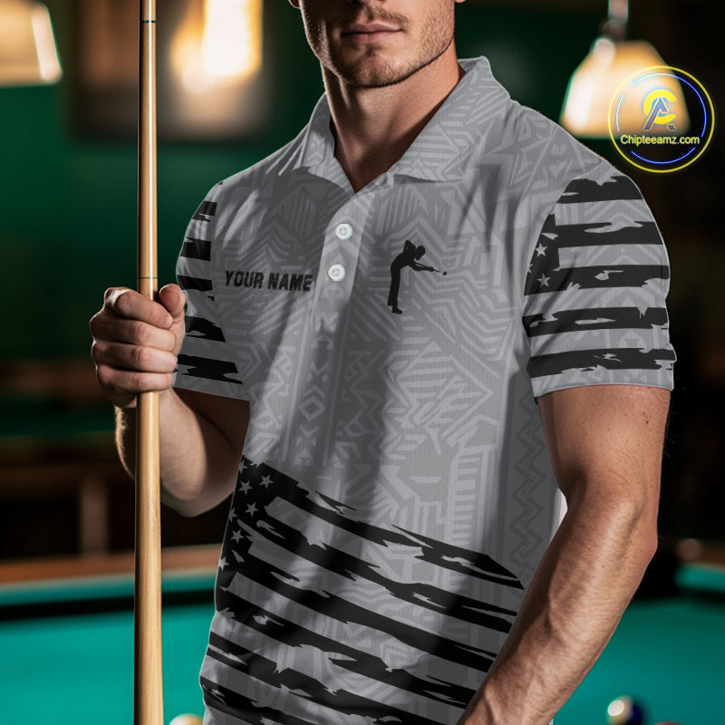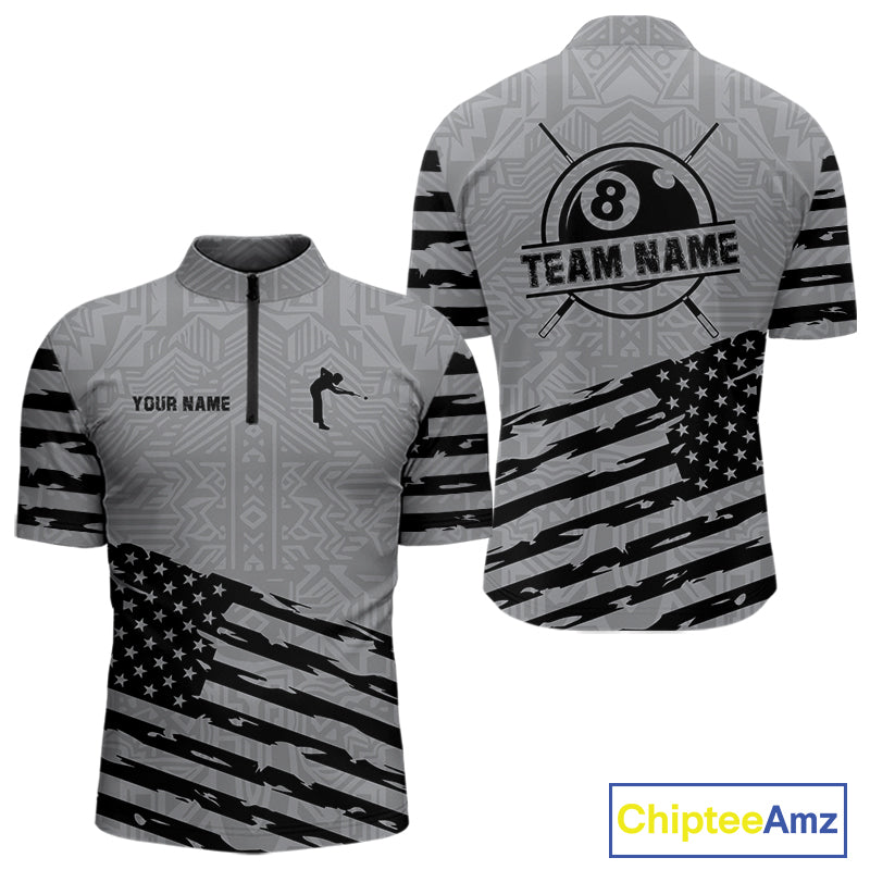 Personalized Grey US Flag 8 Ball Billiard Shirt For Men Custom Billiard Team Shirt, Pool Jerseys TDM4903