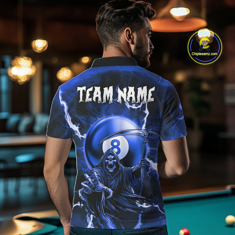 Blue Grim Reaper 8 Ball Billiard Shirt For Men Custom Lightning Pool Team Jersey Polo & 1/4 Zip TDM4957