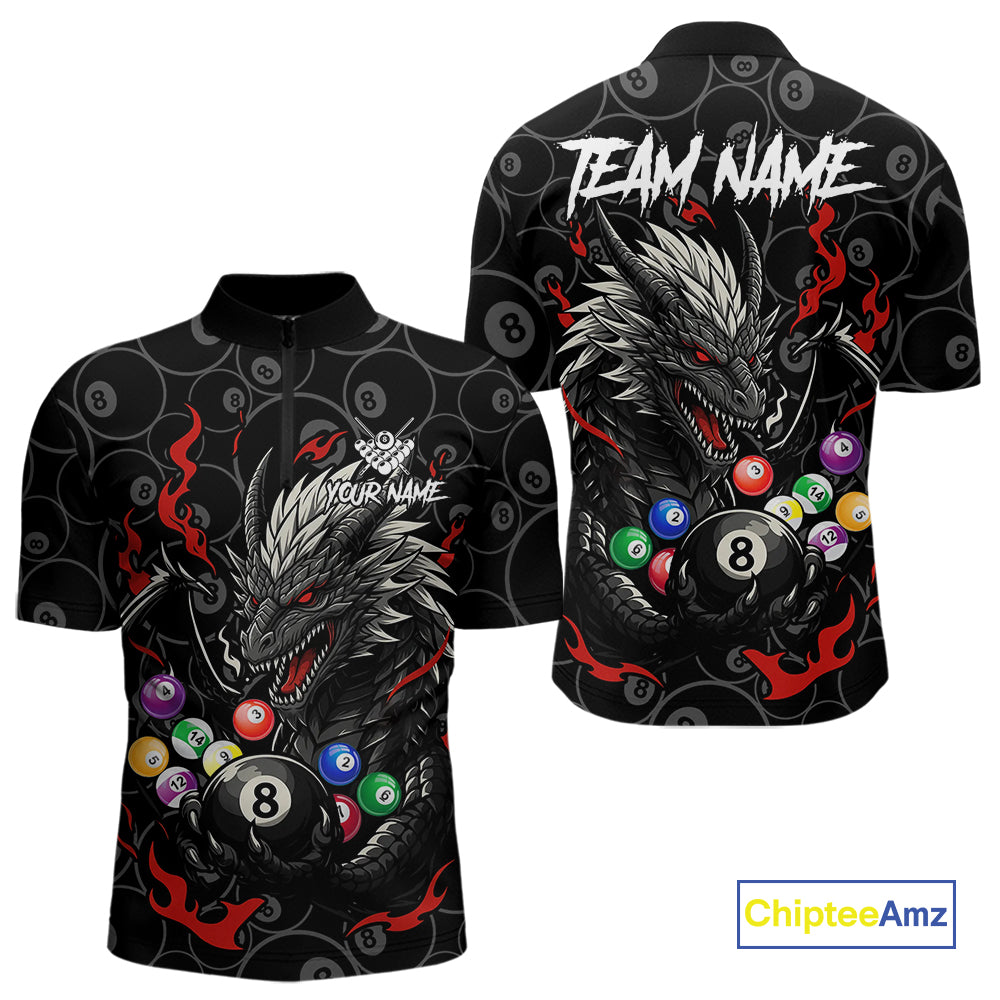 Personalized 8 Ball Dragon Billiard Shirt For Men, Billiard Team Jersey Polo & 1/4 Zip |Red TDM5109