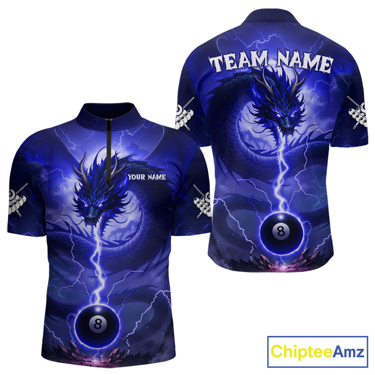 Blue 8 Ball Lightning Dragon Billiard Jersey For Men Custom Pool Team Shirt Polo & 1/4 Zip TDM5115