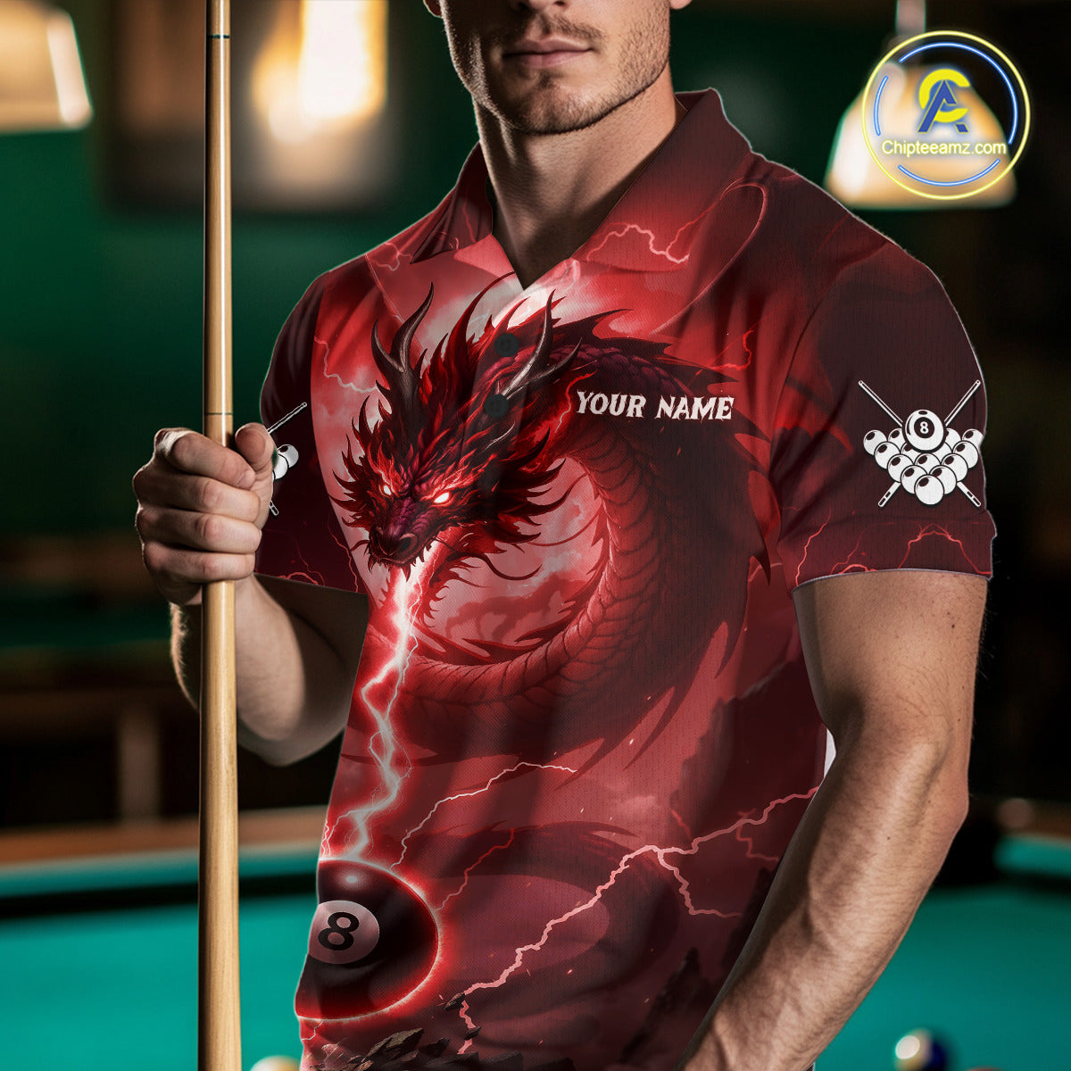 Red 8 Ball Lightning Dragon Billiard Jersey For Men Custom Pool Team Shirt Polo & 1/4 Zip TDM5116