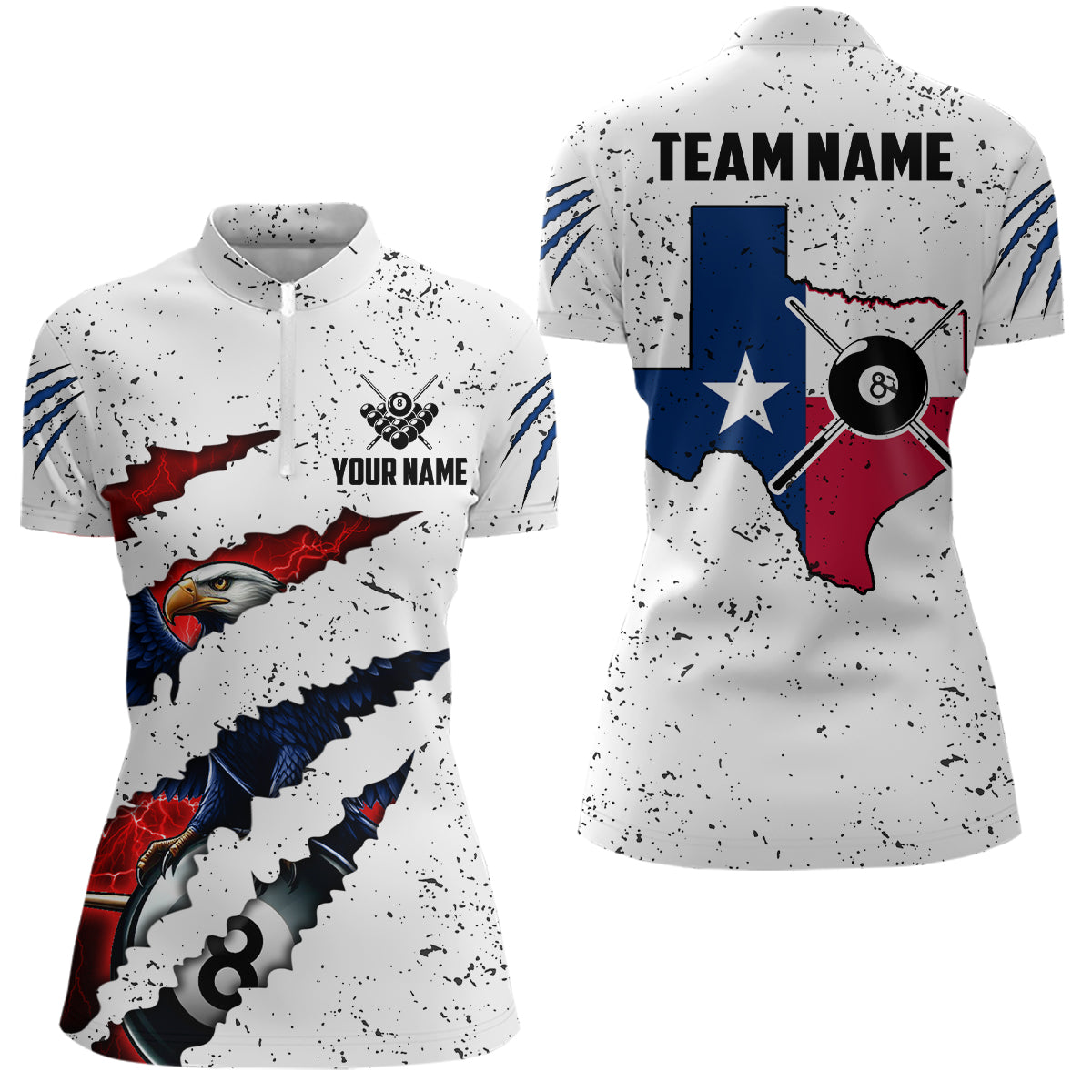 Customized Eagle Texas Flag White Grunge Billiard Shirts For Women, Patriotic Billiard Team Jerseys TDM2319
