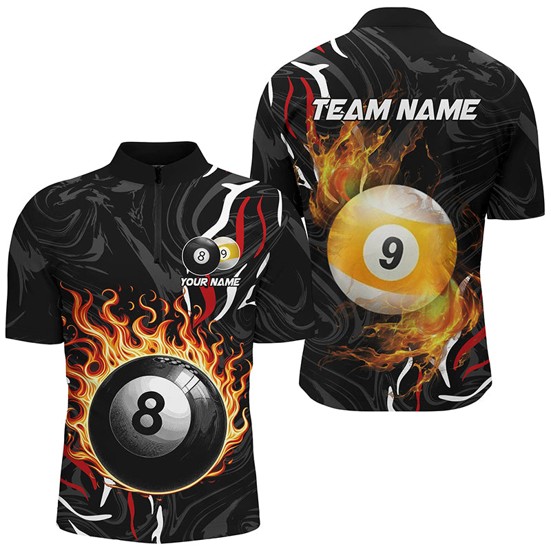Personalized 8 Ball & 9 Ball Fire Flame Men Billiard Shirts, 3D Billiard Jerseys For Team Pooler TDM2504
