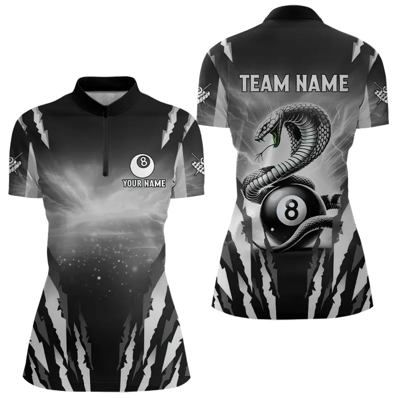 Personalized Thunder Lightning Cobra Snake Women Billiard Shirts, 8 Ball Billiard Team Jerseys |White TDM3609