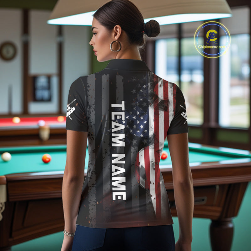 Personalized American Flag 8 Ball Billiard Shirt For Women, Patriotic Pool Team Jersey Polo, 1/4 Zip TDM4844