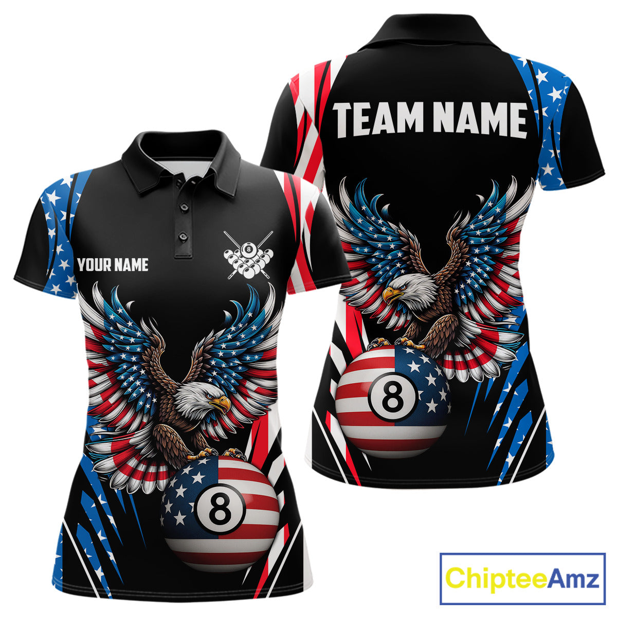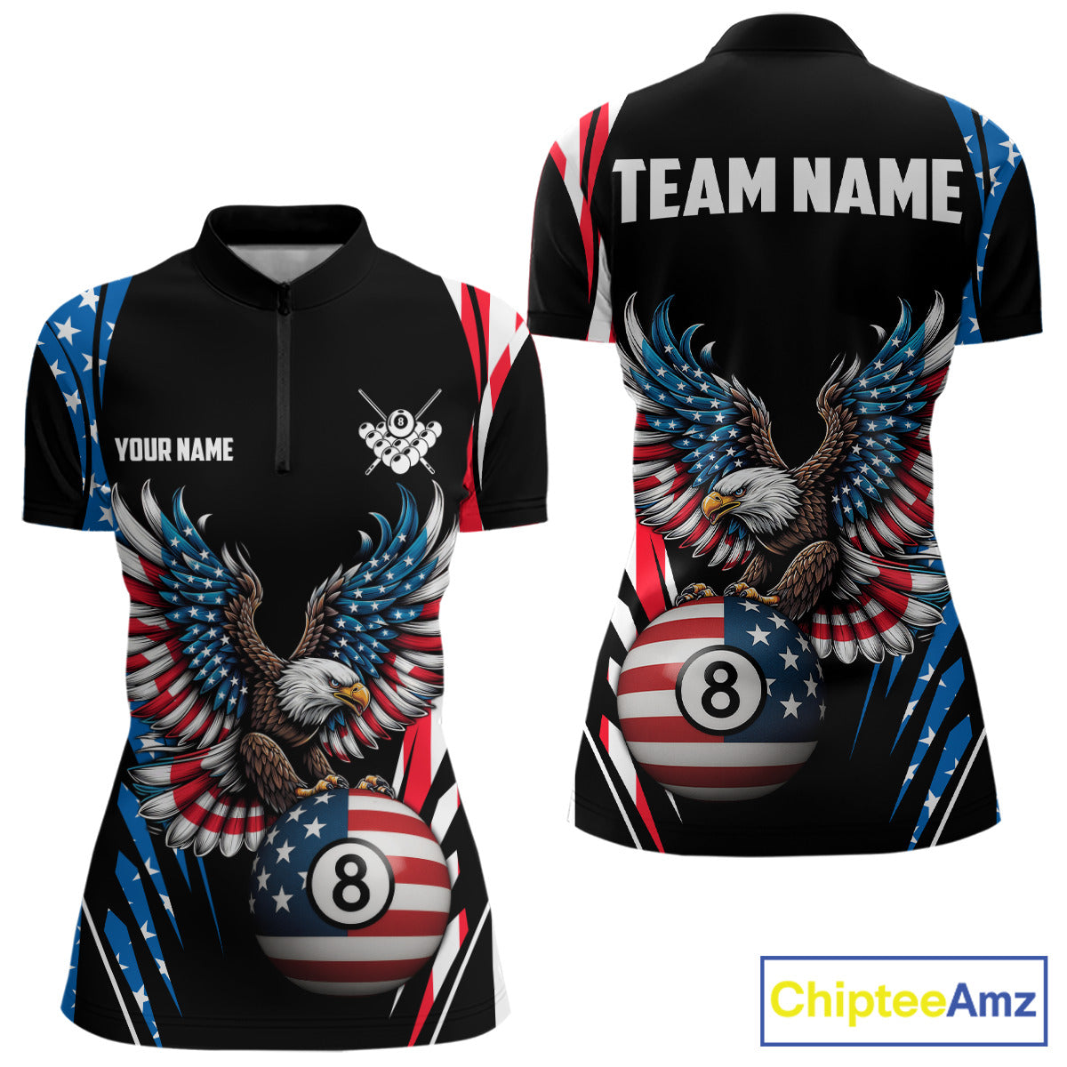 Personalized American Flag Eagle Patriotic Billiard Shirt For Women Custom 8 Ball Pool Team Jersey TDM4860