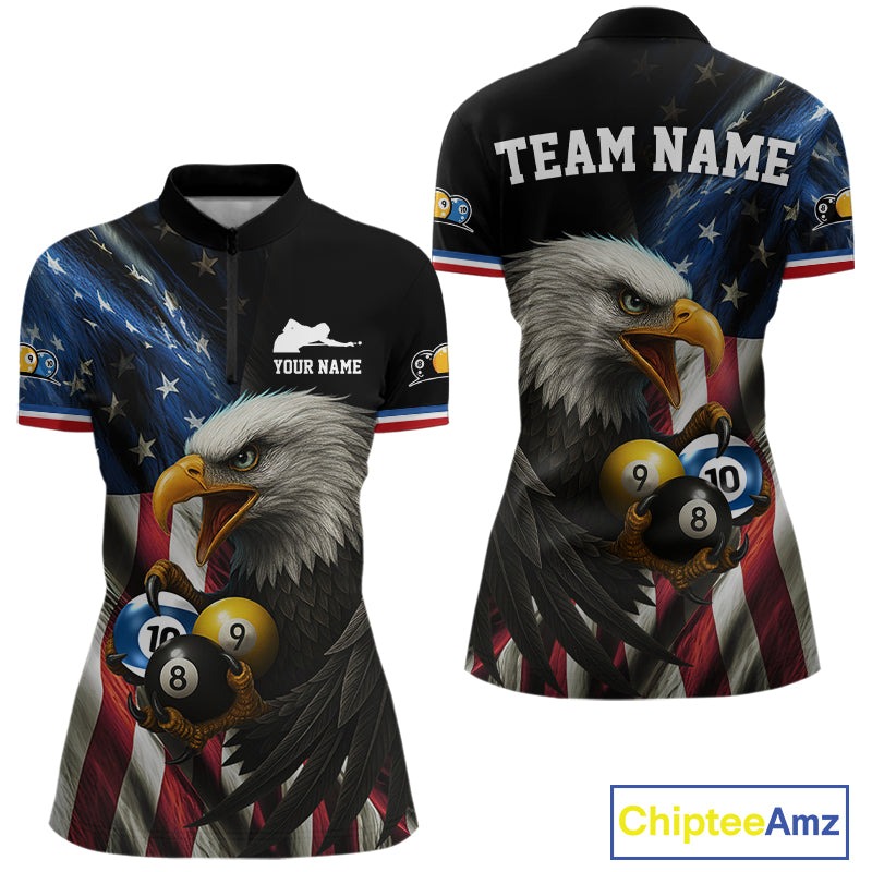 Personalized American Flag Eagle Pool Jersey For Women Custom Billiard 8, 9 & 10 Ball Team Shirt TDM5013