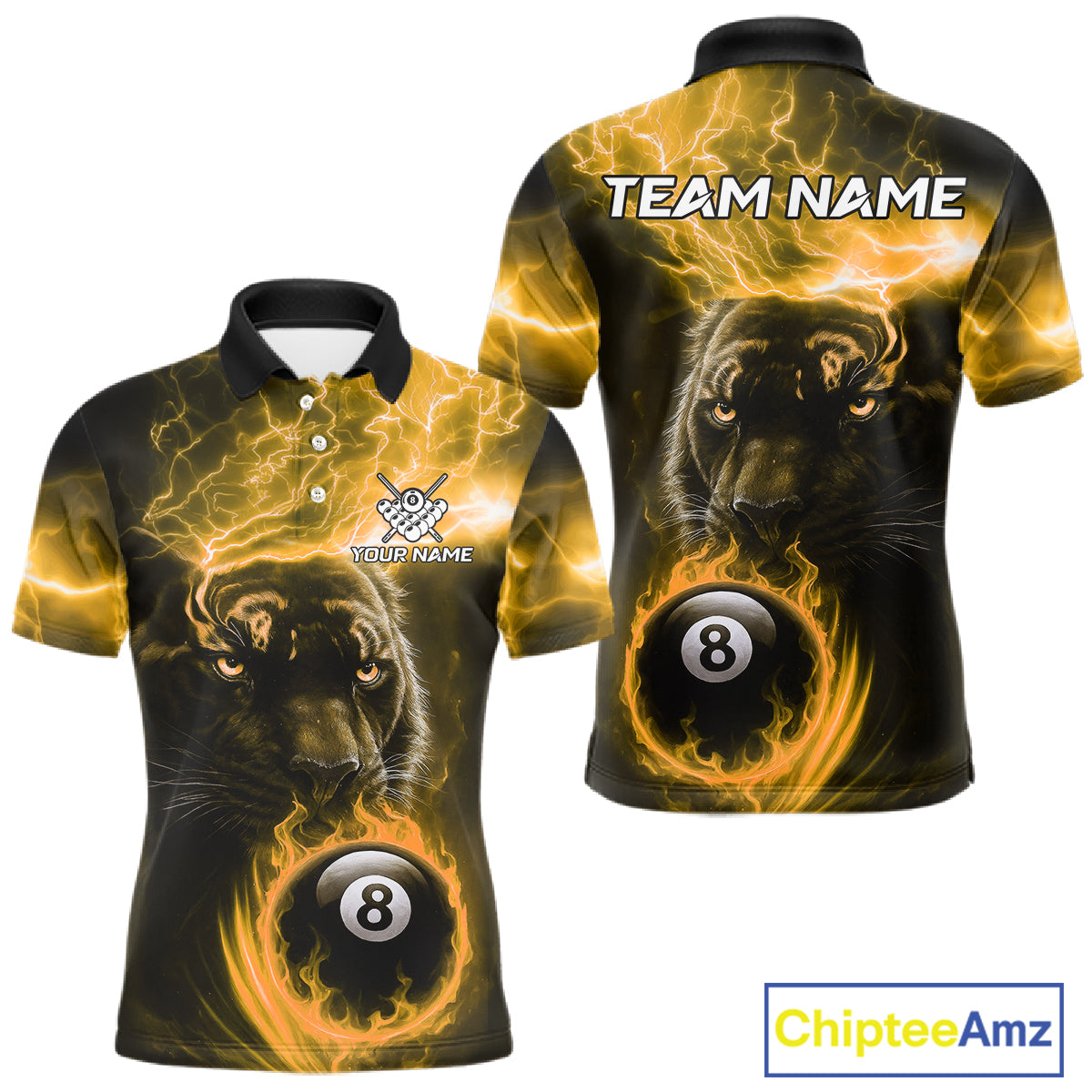 Custom Panther Billiard Polo & 1/4 Zip For Men, Yellow Flame 8 Ball Lightning Pool Team Jersey TDM4581