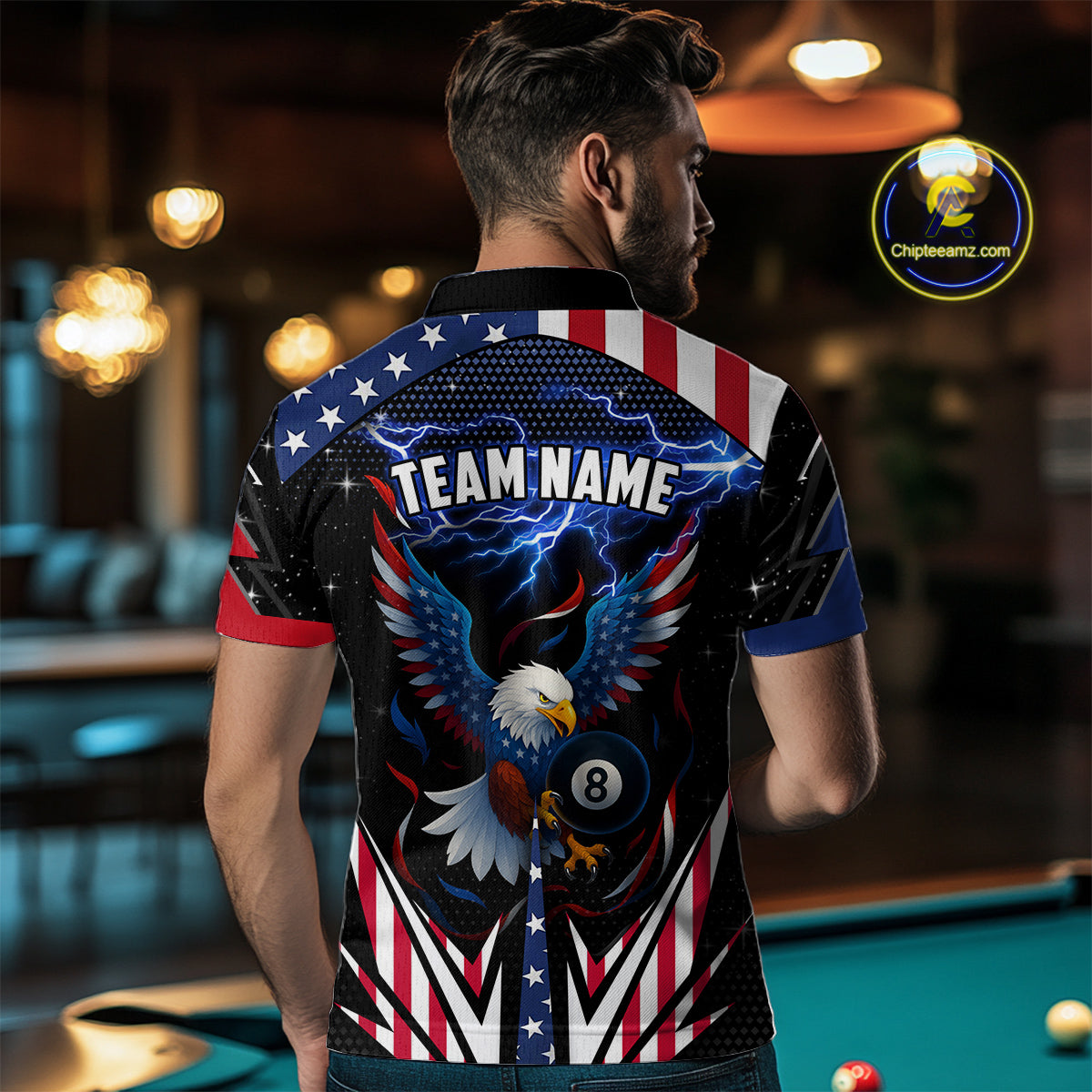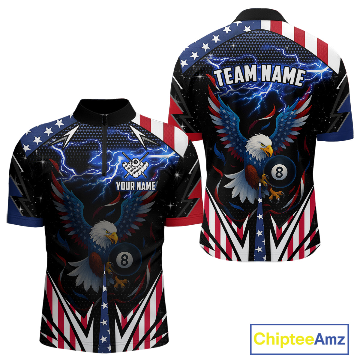 American Flag Eagle 8 Ball Pool Lightning Billiard Shirt For Men Custom Patriotic Billiard Jersey TDM4704