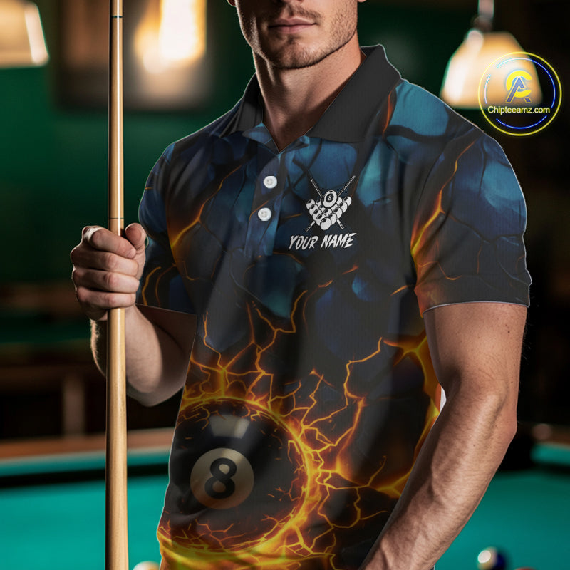 Personalized Fire Cracks 8 Ball Billiard Shirt For Men Custom 8 Ball Pool Jersey Polo & 1/4 Zip TDM5045