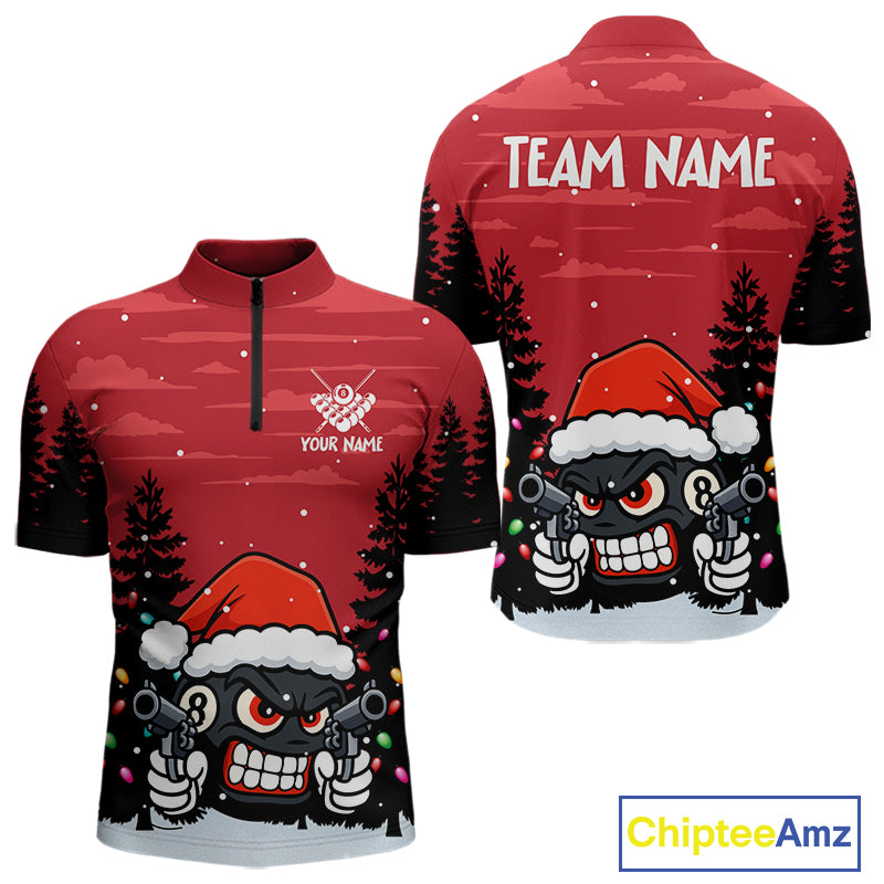Personalized Red Christmas Santa 8 Ball Pool Billiard Shirts For Men, Funny Xmas Billiard Jerseys TDM5221