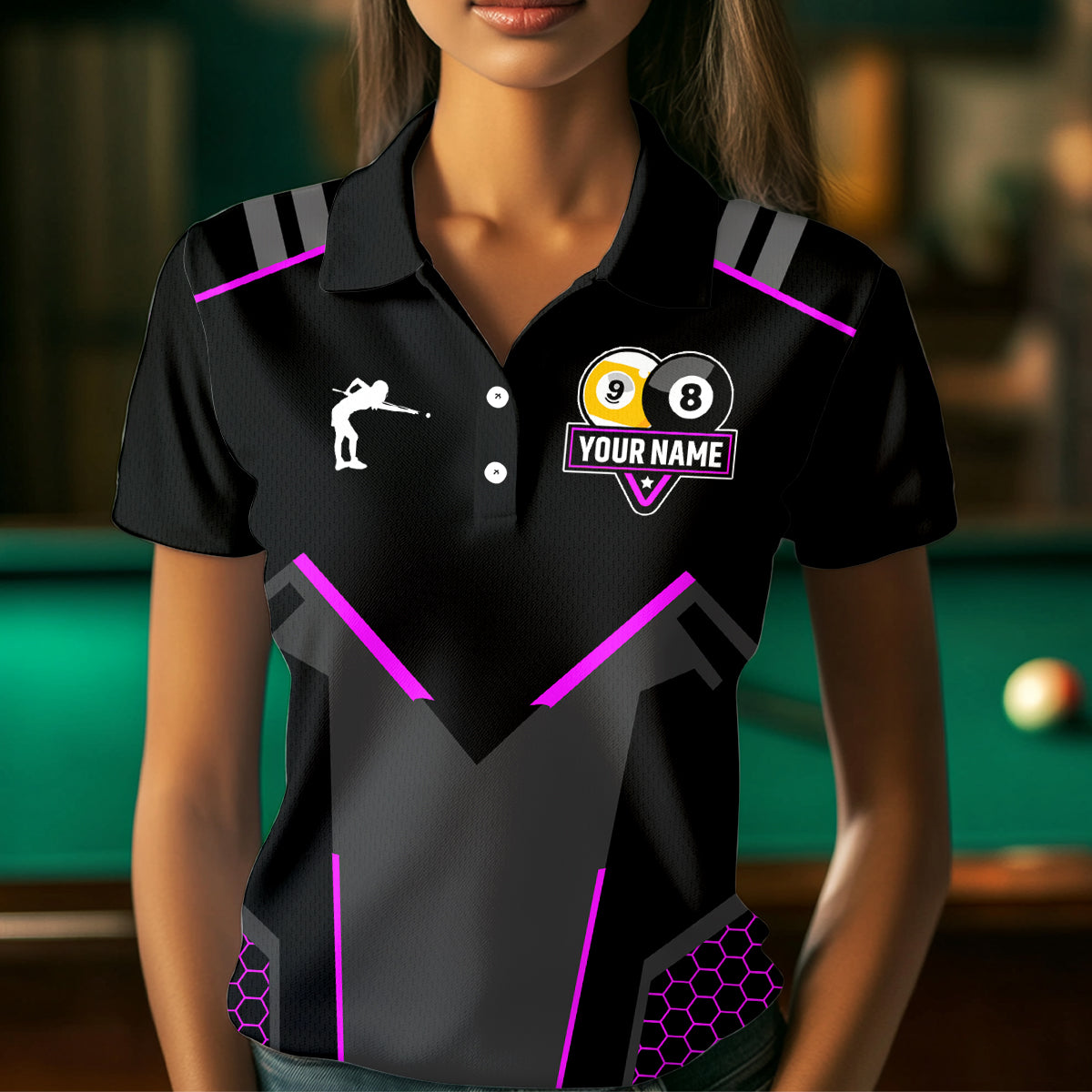 Personalized Billiard 8 Ball & 9 Ball Pool Polo, 1/4 Zip For Women Custom Team Billiard Jersey|Purple TDM3582