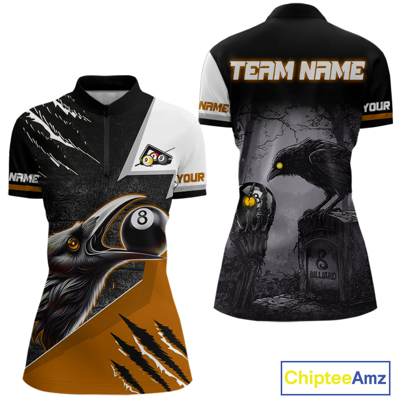 Personalized Orange 8 Ball Pool Crows Billiard Shirts For Women, Halloween Pool Team Jersey Outfit TDM4509