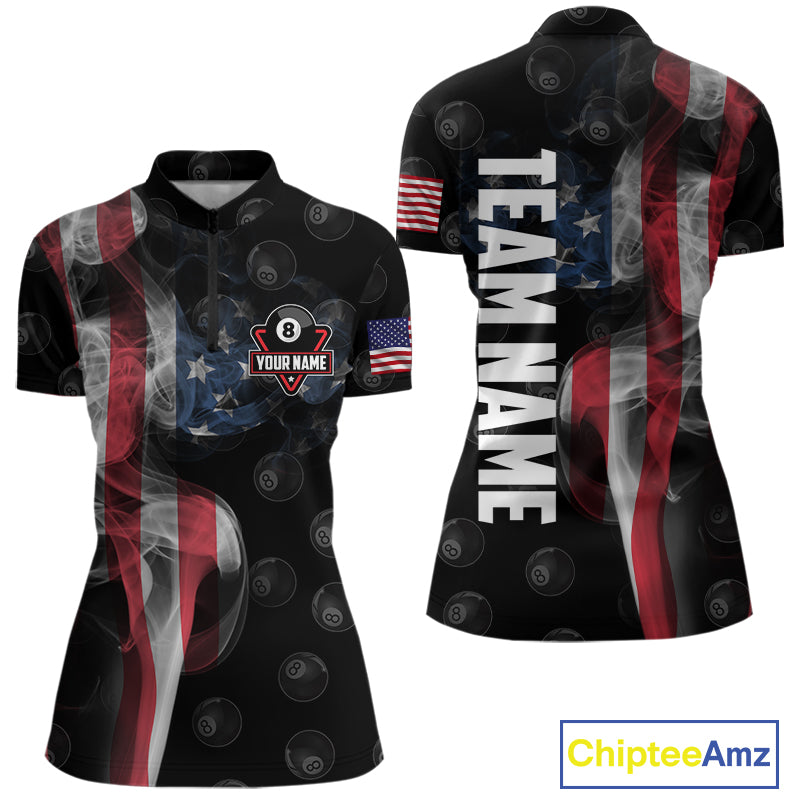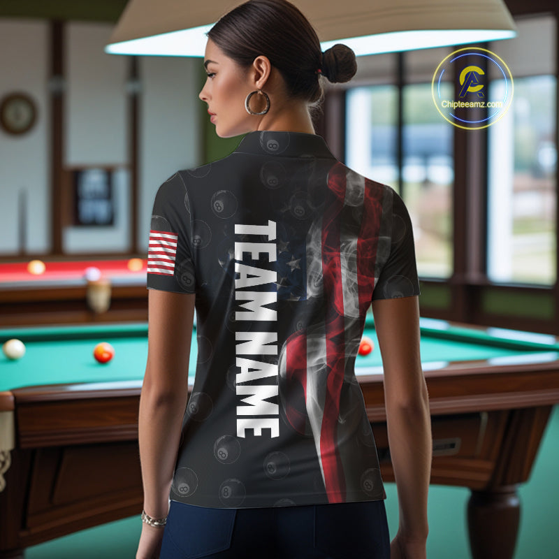 Personalized Vintage Smoke US Flag Billiard Shirts For Women, 8 Ball Pool Patriotic Billiard Jerseys TDM4731