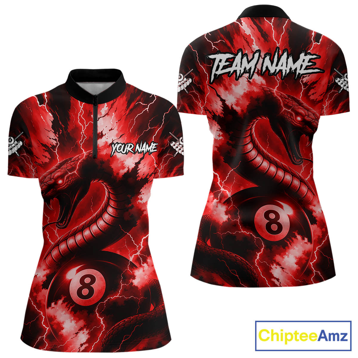 Red 8 Ball Thunder Lightning Cobra Snake Billiard Shirt For Women Custom Billiard League Pool Jersey TDM4840