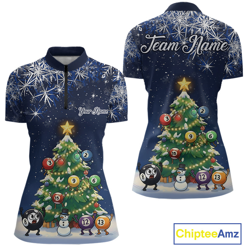 Funny Christmas Billiard Balls Pine Tree Pool Shirt For Women Custom Xmas Billiard Shirts Gifts TDM5215
