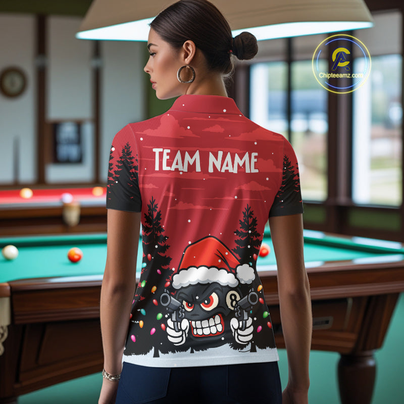 Personalized Red Christmas Santa 8 Ball Pool Billiard Shirts For Women, Funny Xmas Billiard Jerseys TDM5221