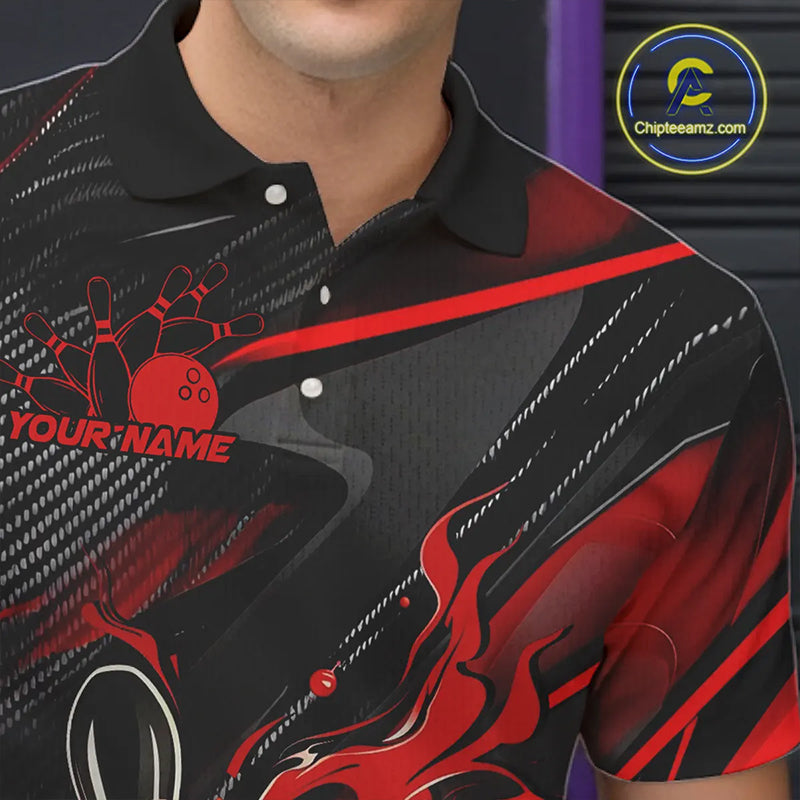 Black And Red Custom Flame Bowling Shirts For Men, Fire Bowling Team Shirt Bowler Jersey IPHW7931