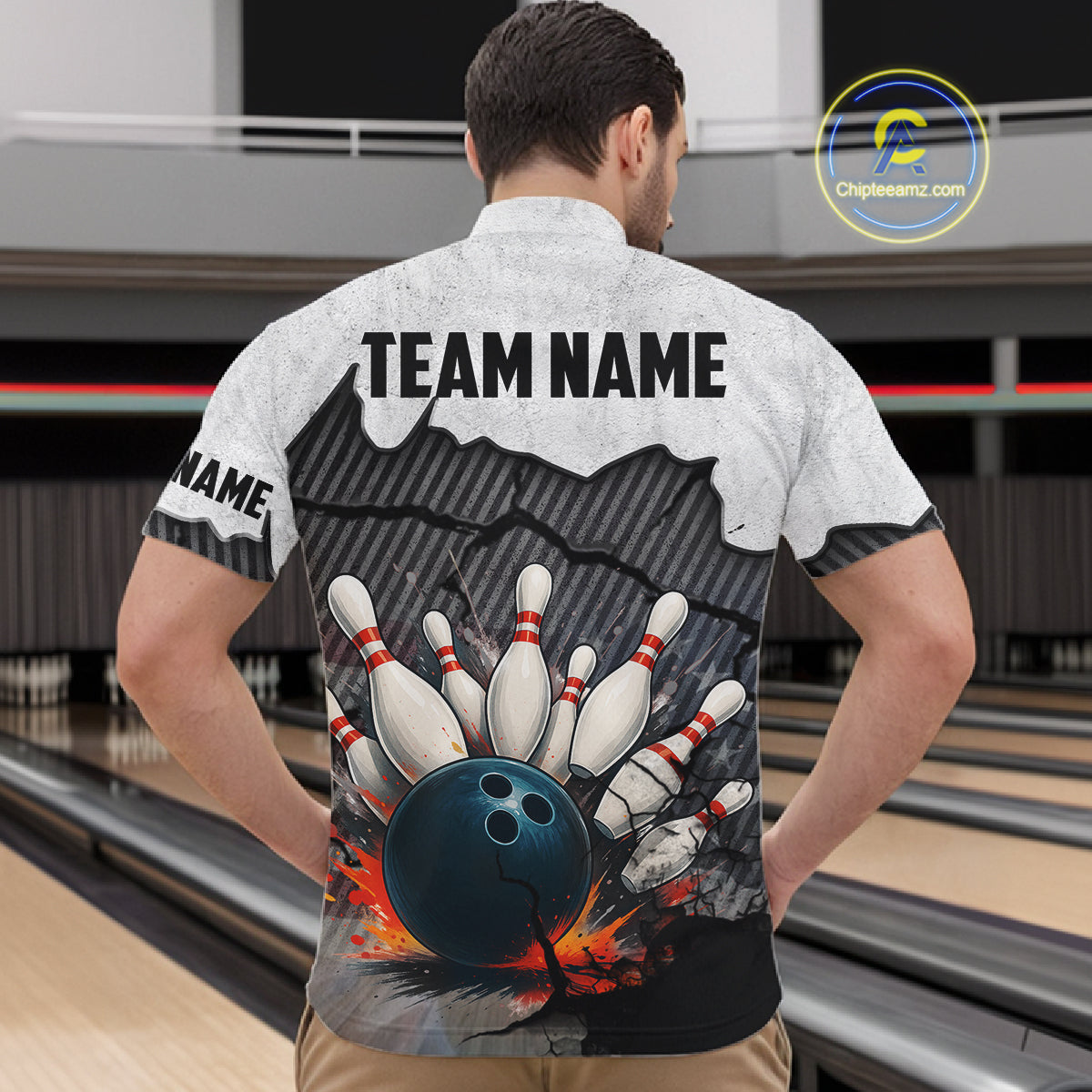 Black and White grunge Bowling Shirts for Men Custom Team Bowling Jerseys, Gift for Bowlers NQS10751