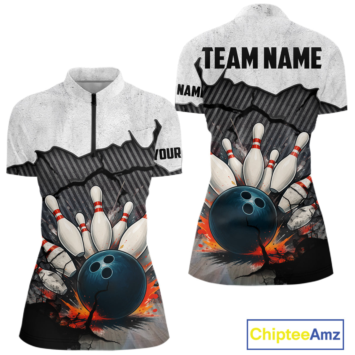 Black and White grunge Bowling Shirts for Women Custom Team Bowling Jerseys, Gift for Bowlers NQS10751