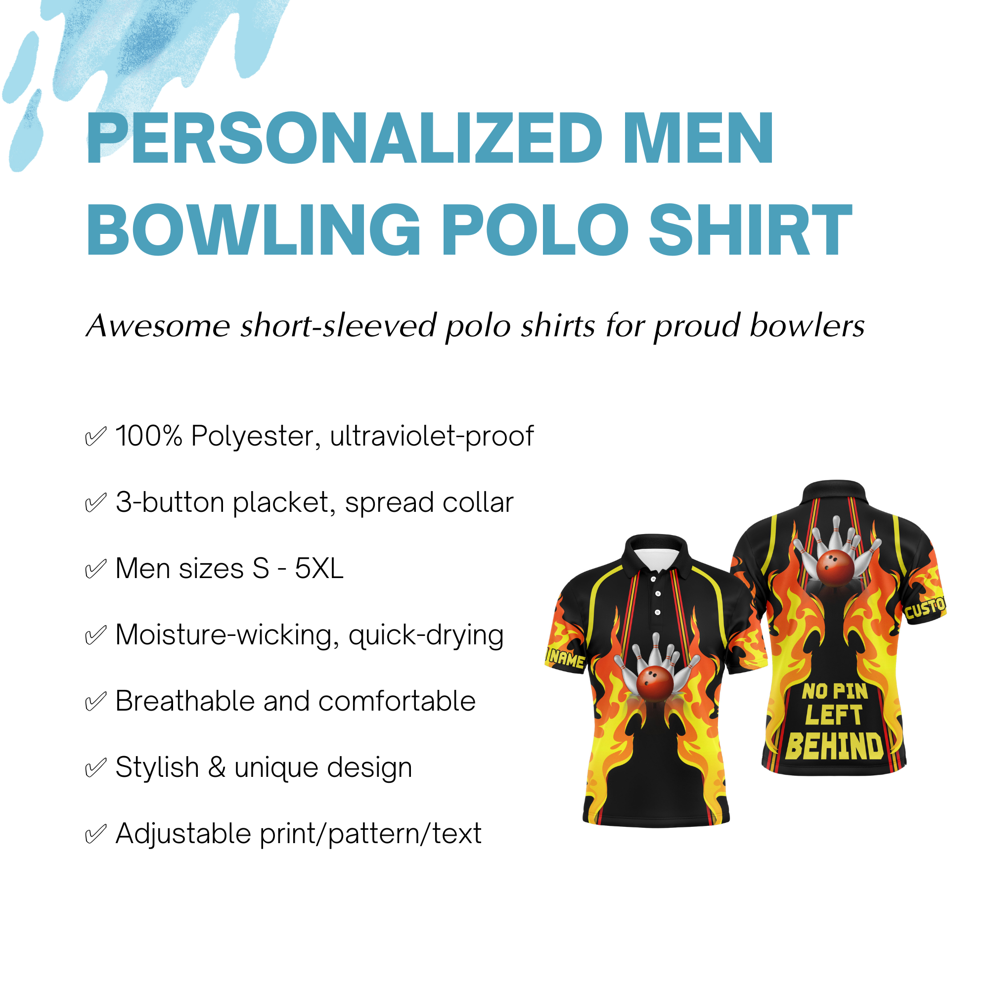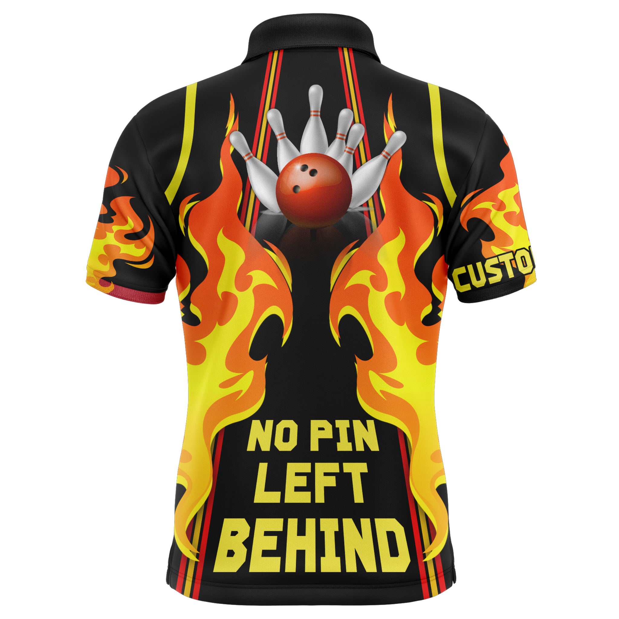 No Pin Left Behind Personalized Men Polo Bowling Shirt, Cool Flame Bowler Jersey NBP26