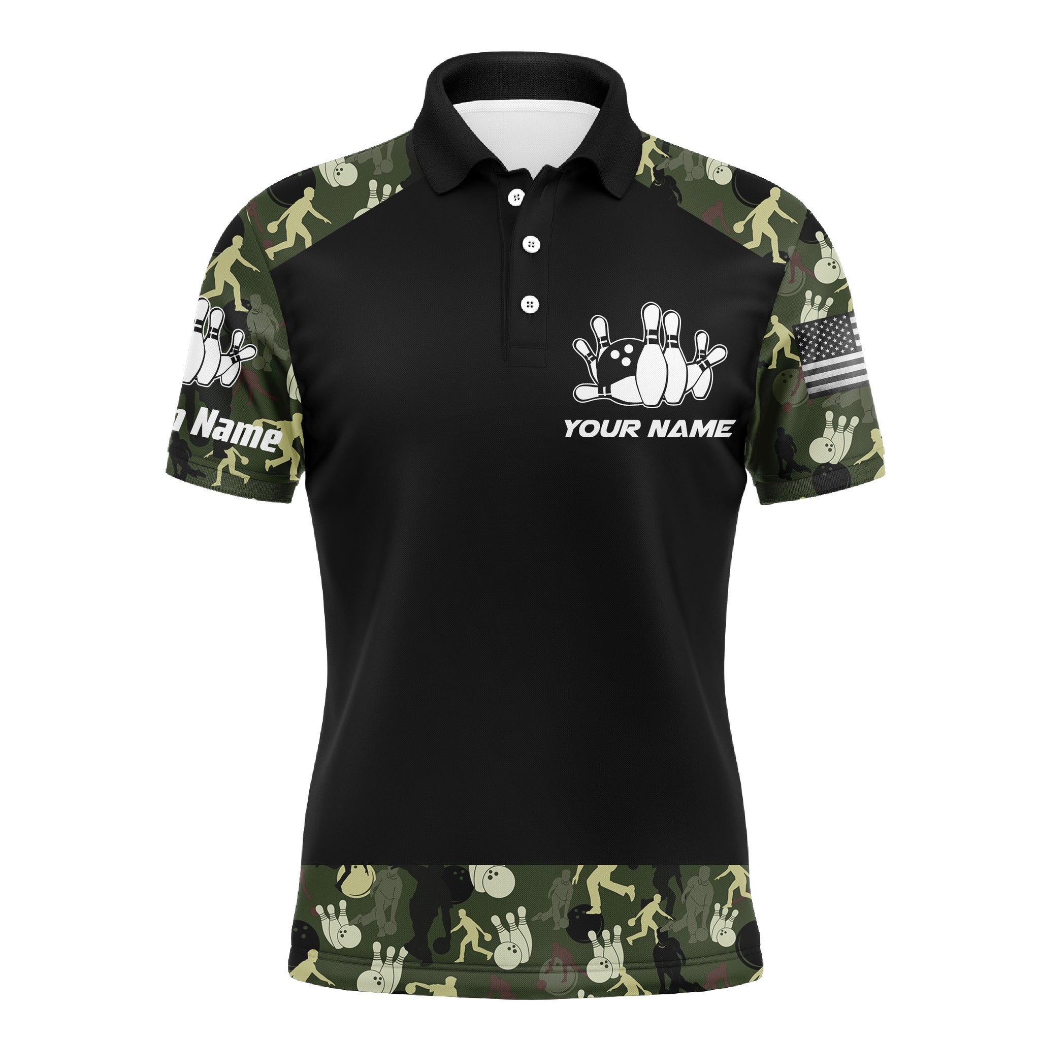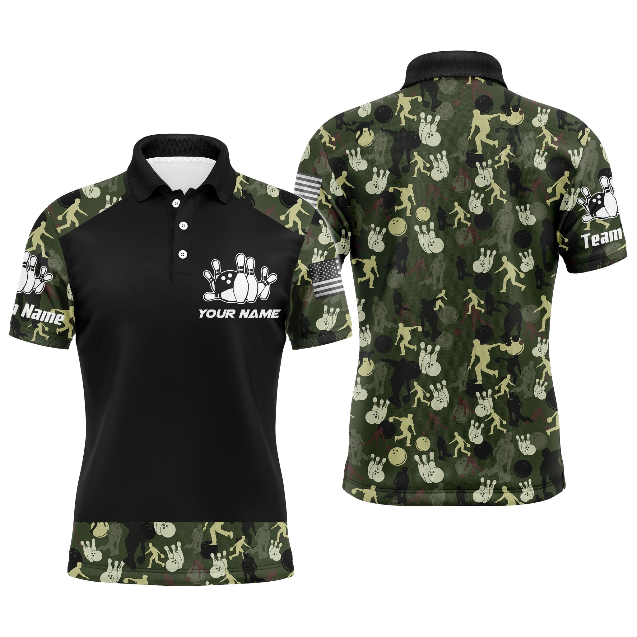 Personalized Men Polo Bowling Shirt Camo Balls and Pins Team Short Sleeves Men Bowlers Jersey NBP12