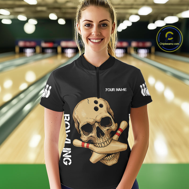 Personalized Skull Bowling Shirts For Women Custom Team's Name Skull Bowler Jerseys | Black NQS11081