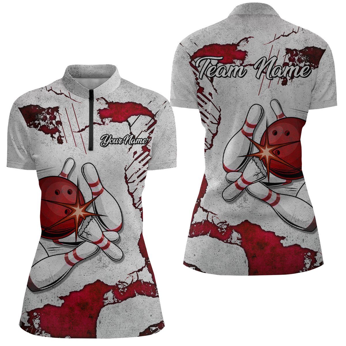 Personalized Unisex Bowling Jersey Quarter Zip Bowling Team Shirt for Women Bowler Gift QZT498